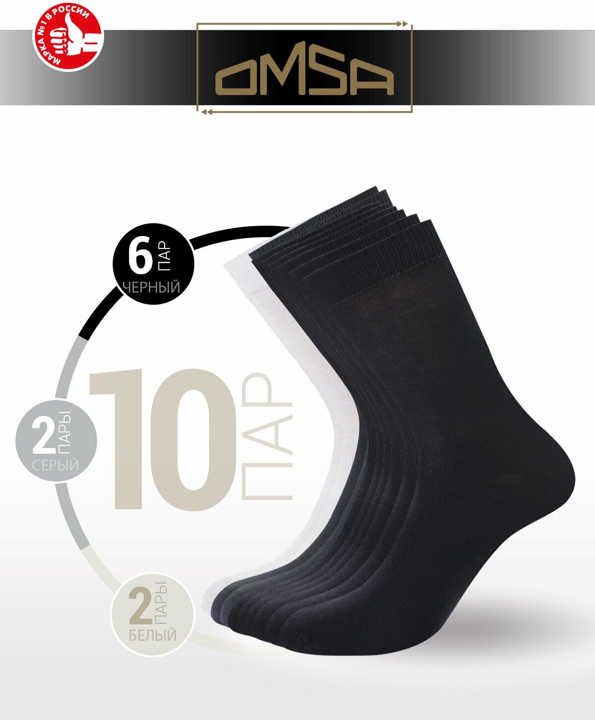 Носки мужские OMSA ECO 401, высокие, комплект 10 шт, Цвет Черный/Темно-серый/Светло-серый/Синий/Белый, Размер 42-44 (27-29)