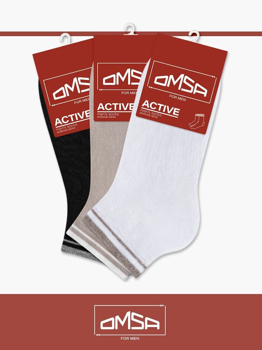 Носки мужские OMSA ACTIVE 105 укороченные, комплект 3 пары, короткие, летние, спортивные, цвет Bianco/Grigio Chiaro/Nero, размер 36-38