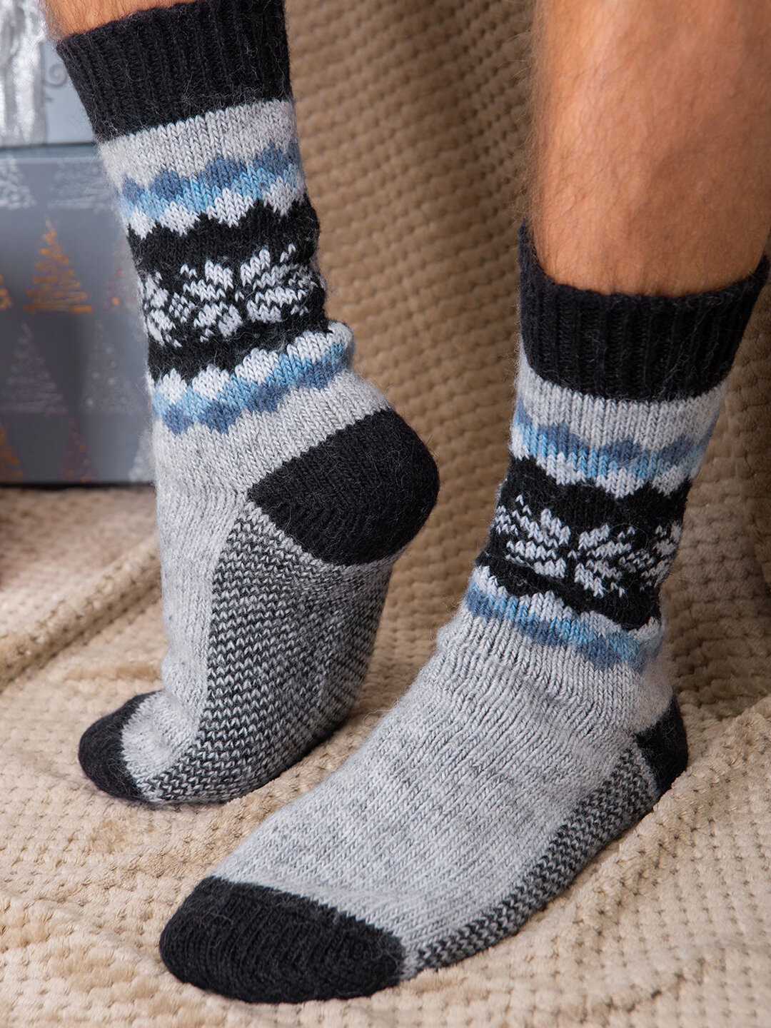Носки мужские шерстяные с рисунком HappyFox. HFBN2411 размер 41-43. цвет серый.черный