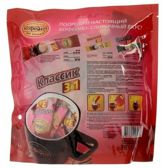 Московская кофейня на паяхъ Кофе растворимый Классик 3 в 1, 20 шт по 16 г