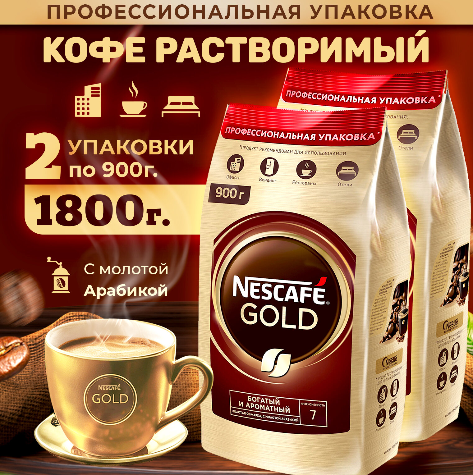 Кофе растворимый NESCAFE Gold сублимированный с добавлением молотого, пакет, 900 г х 2 шт
