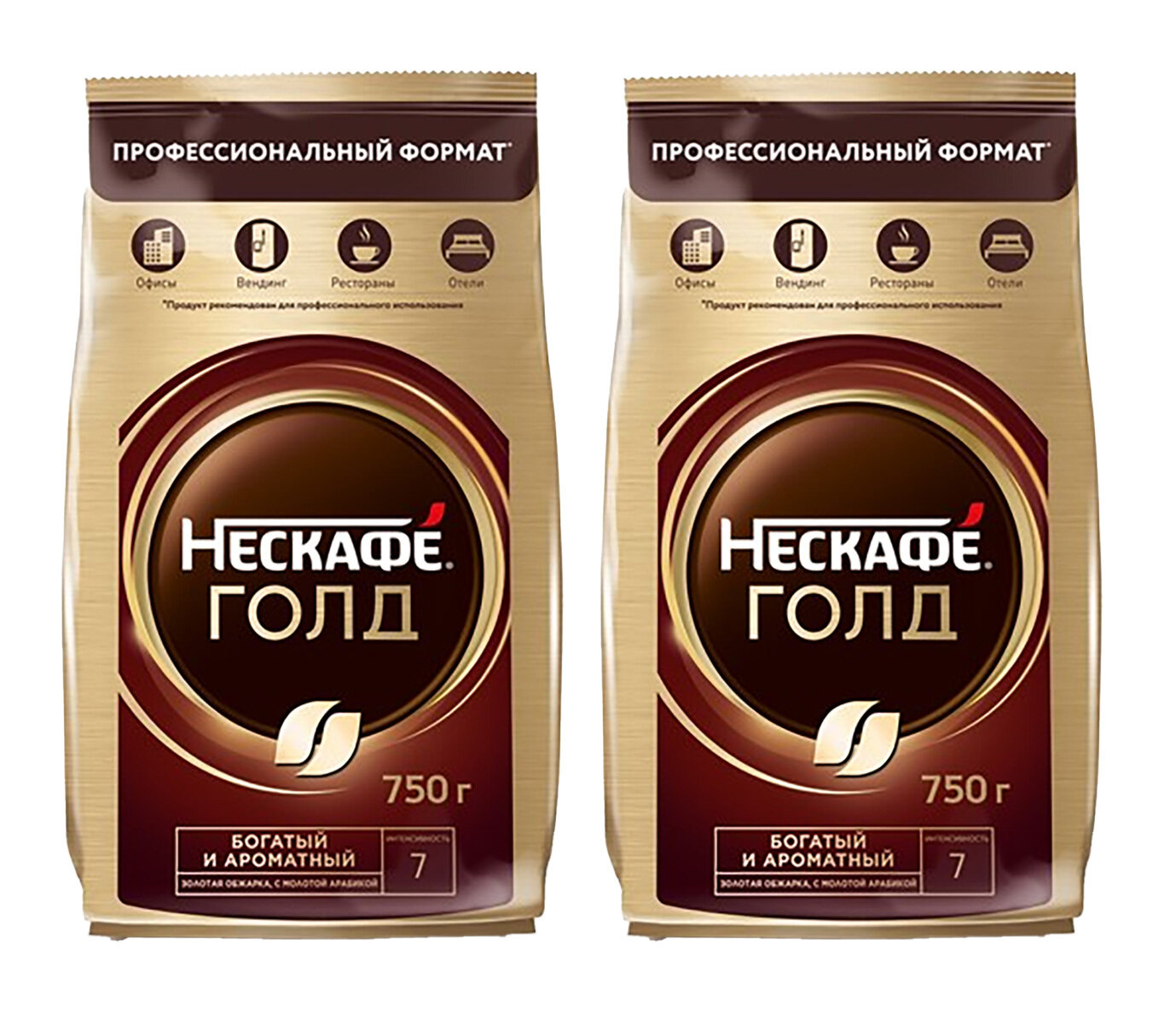 Кофе растворимый Nescafe Gold сублимированный с добавлением молотого, пакет, 750 г, 2 уп.