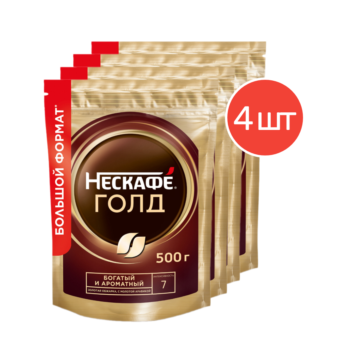 Кофе Нескафе Голд растворимый 500 г, 4 шт