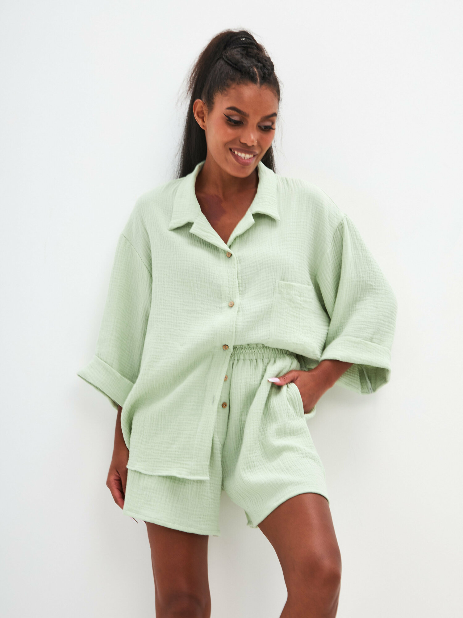 "Муслиновая женская пижама Sold Out", размер 46-48, цвет зеленый