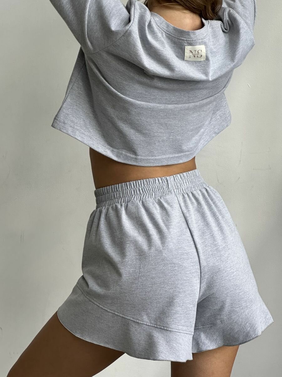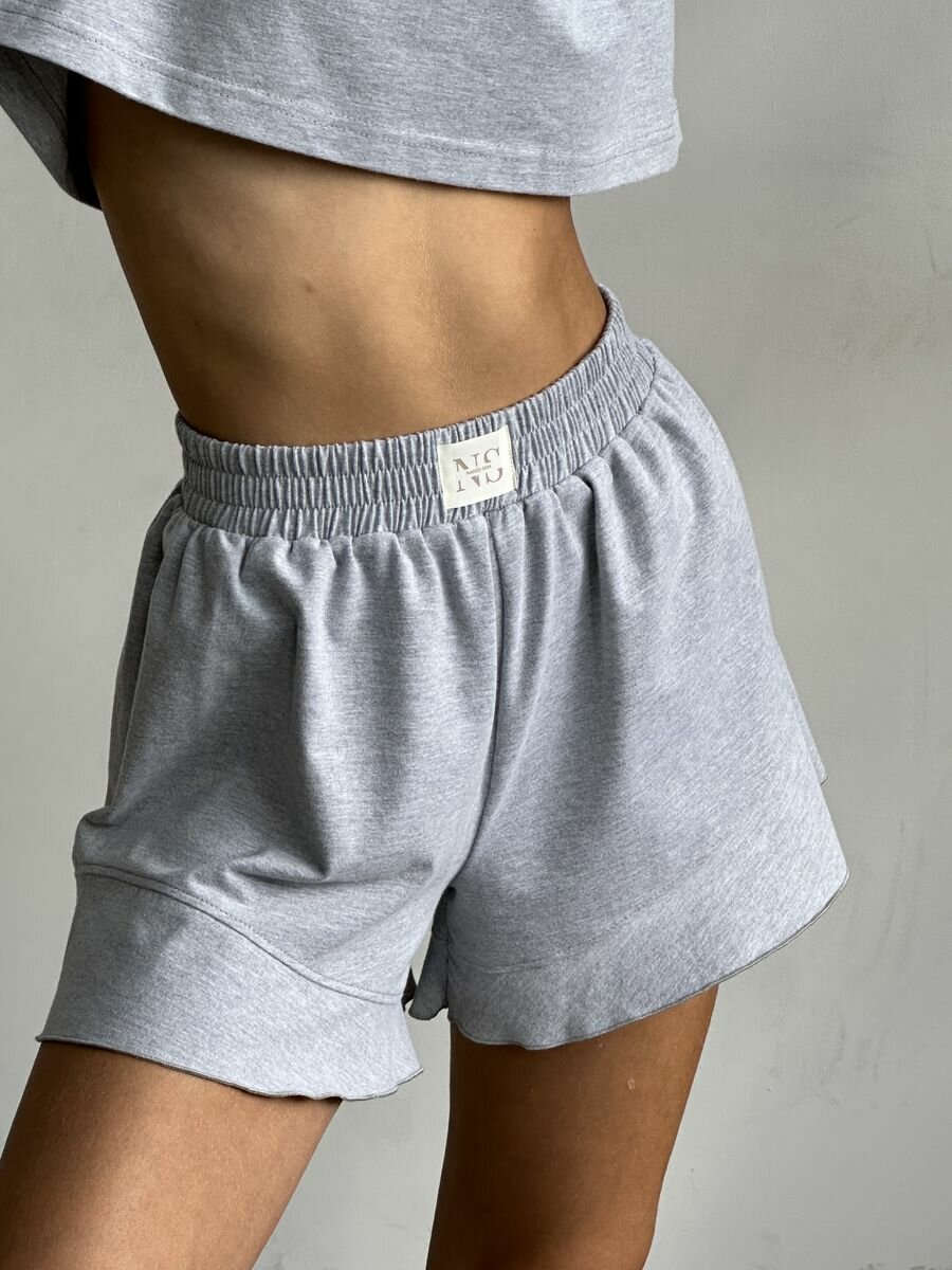 Женская пижама с шортами и футболкой из хлопка размер xs-s серый меланж