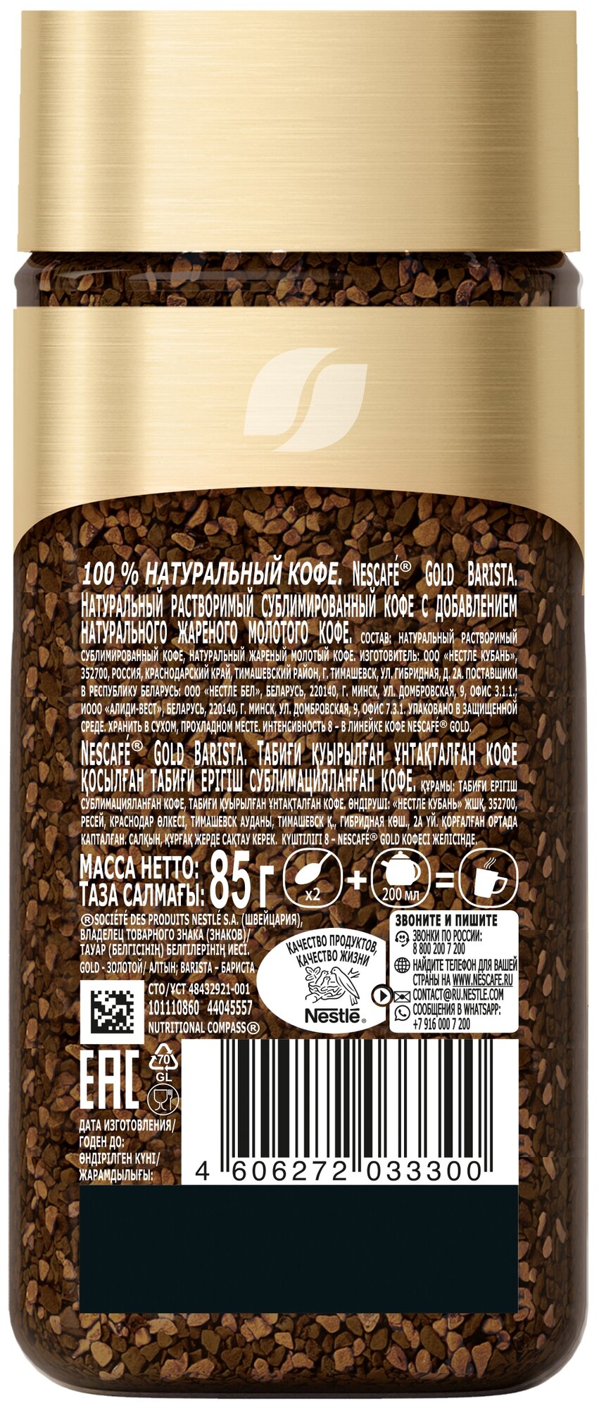 NESCAFE GOLD Barista Кофе натуральный растворимый сублимированный с добавлением натурального жаренного молотого кофе 85 г