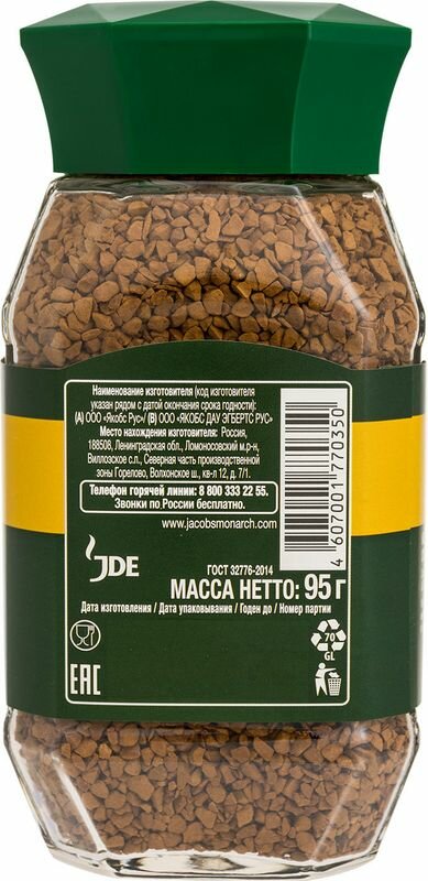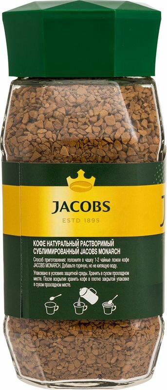 Кофе растворимый Jacobs "Monarch", сублимированный, стеклянная банка, 95г