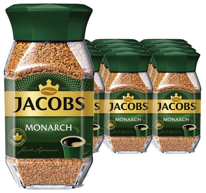 Кофе растворимый Jacobs Monarch сублимированный, стеклянная банка, 12 уп. по 95 г