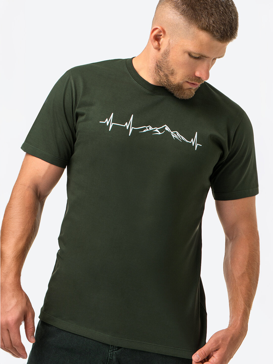 Футболка мужская с принтом хлопковая HappyFox HF9111A горы.кардиограмма,хаки 50