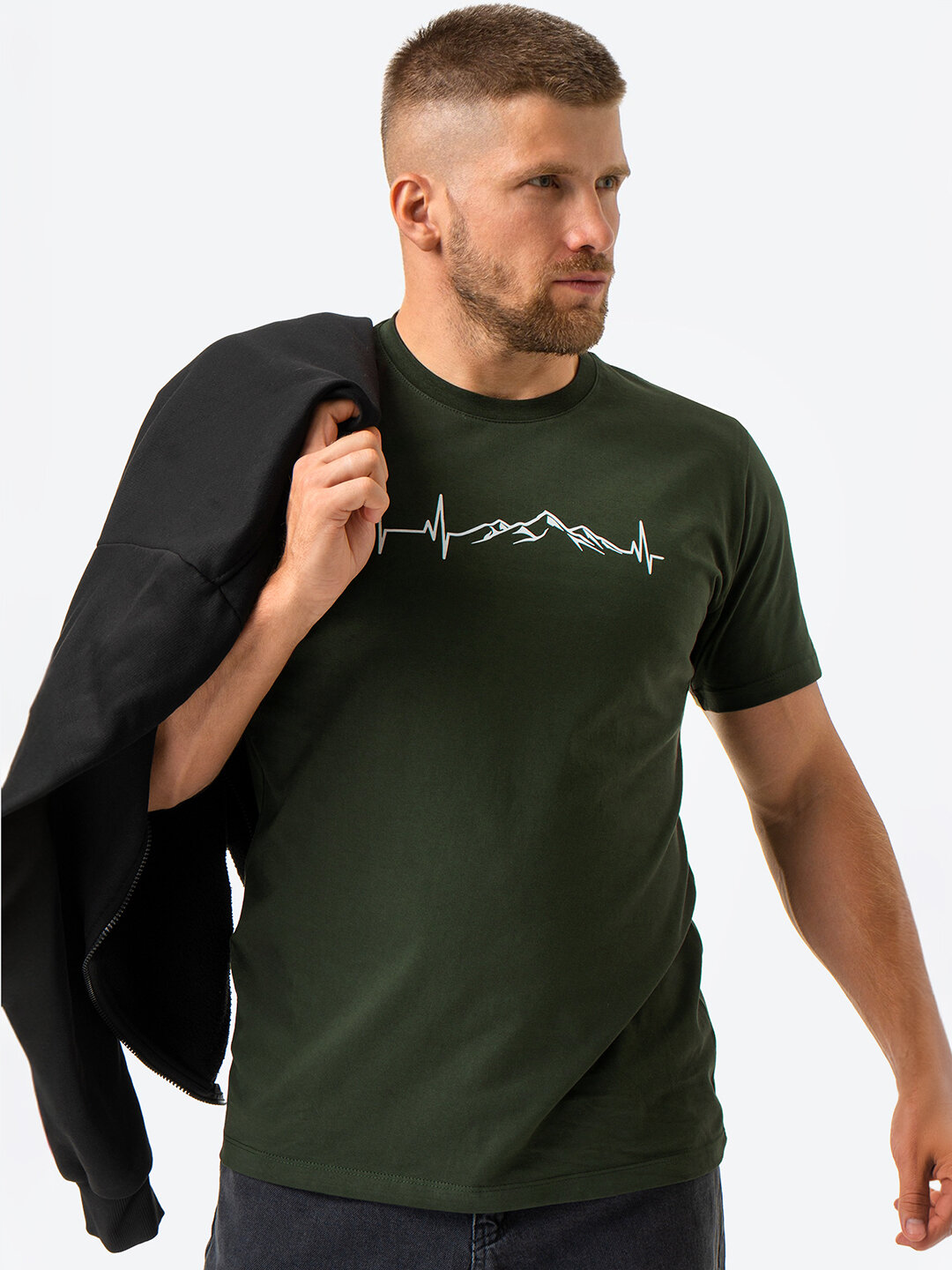 Футболка мужская с принтом хлопковая HappyFox HF9111A горы.кардиограмма,хаки 50