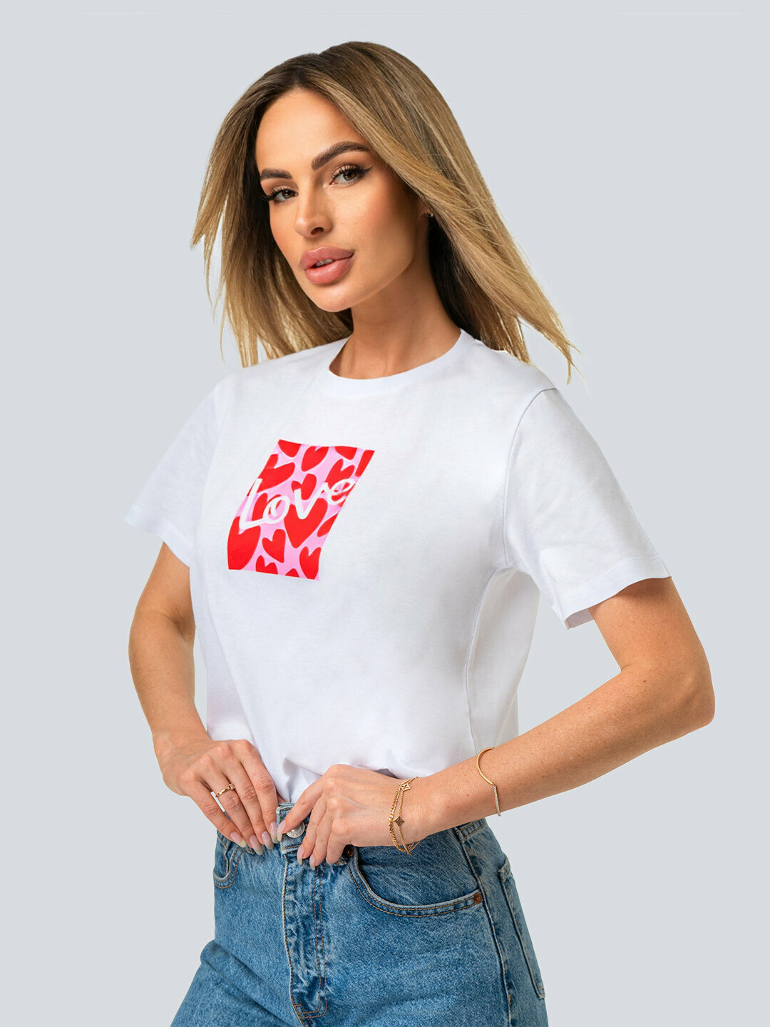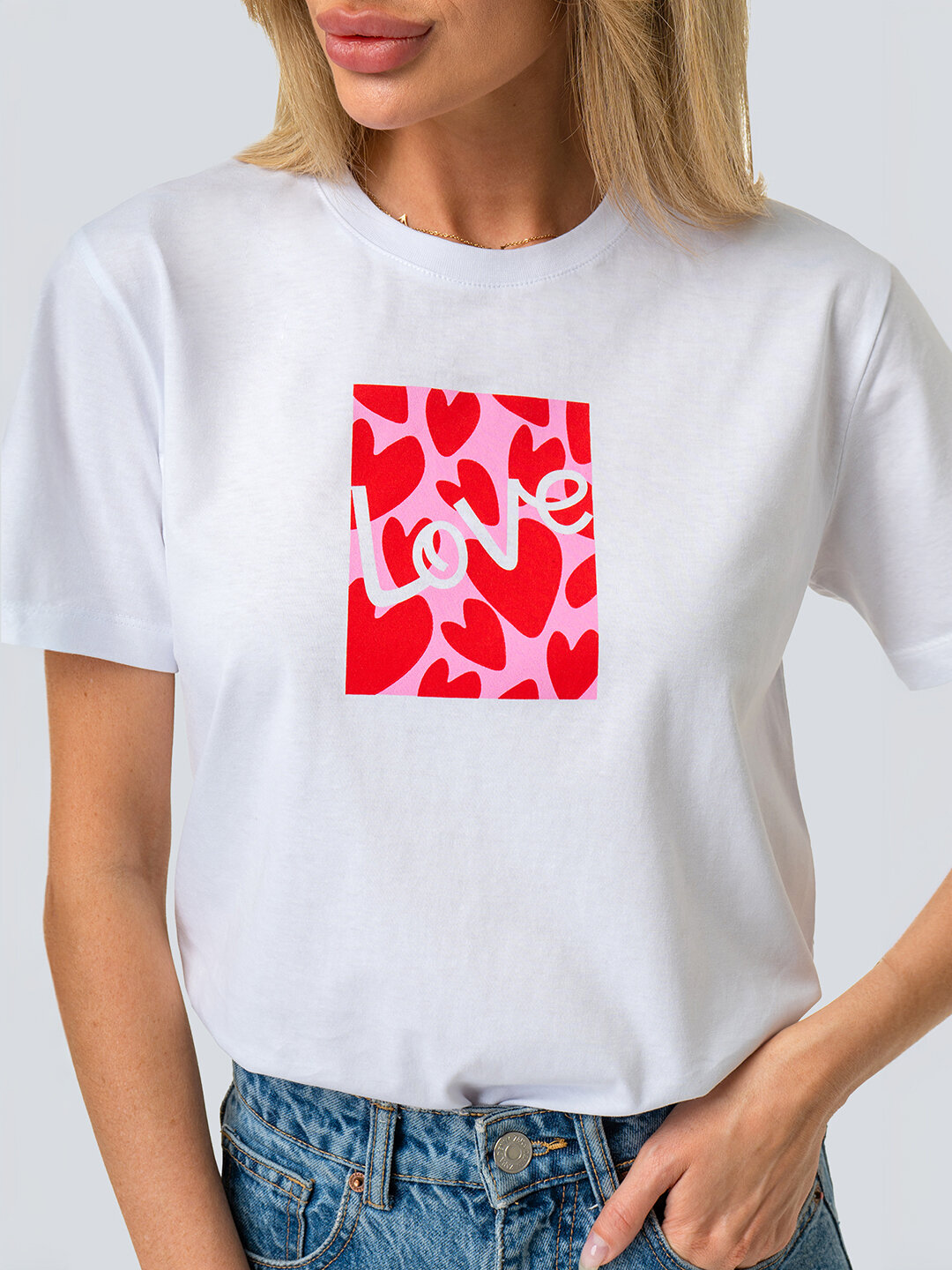 Футболка женская с принтом хлопковая HappyFox HF9111A love.белый 44