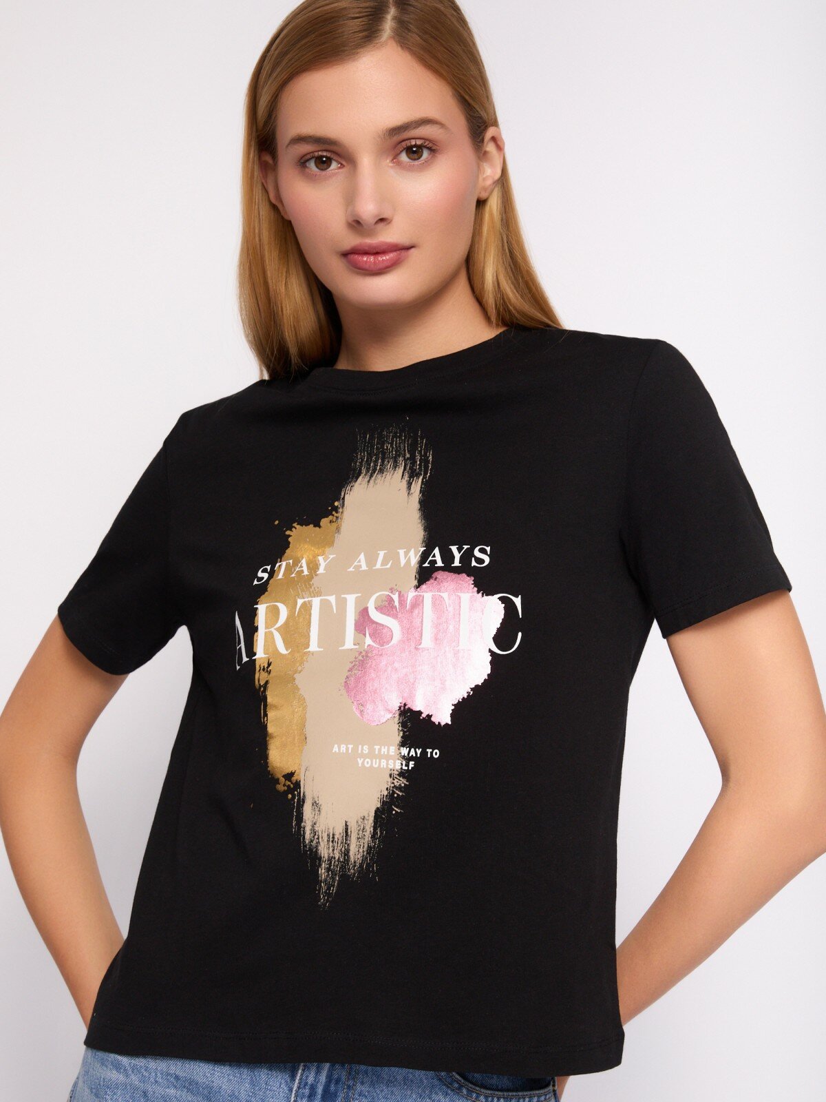 Трикотажная футболка из хлопка с принтом, цвет Черный, размер XS 024213273273