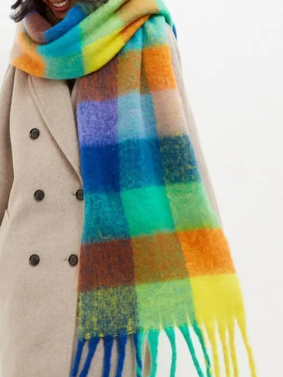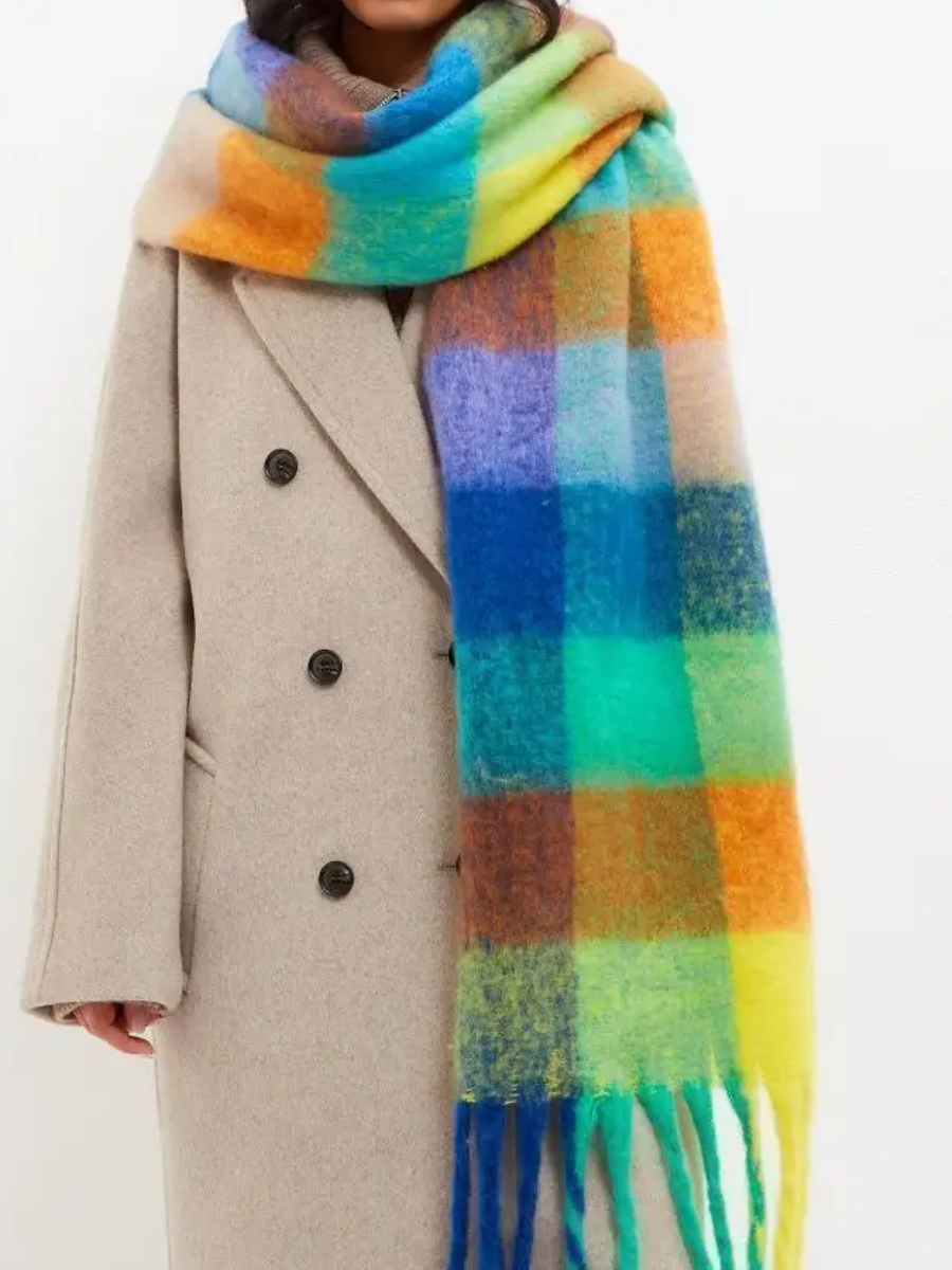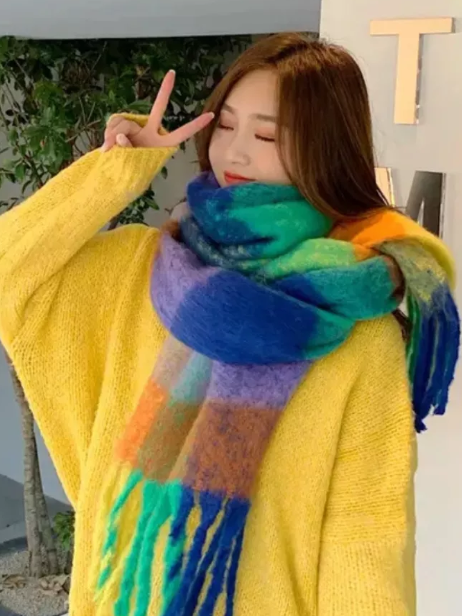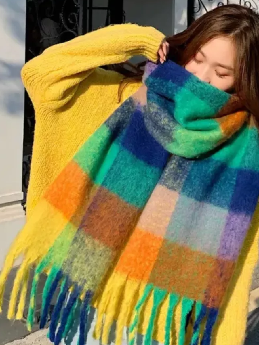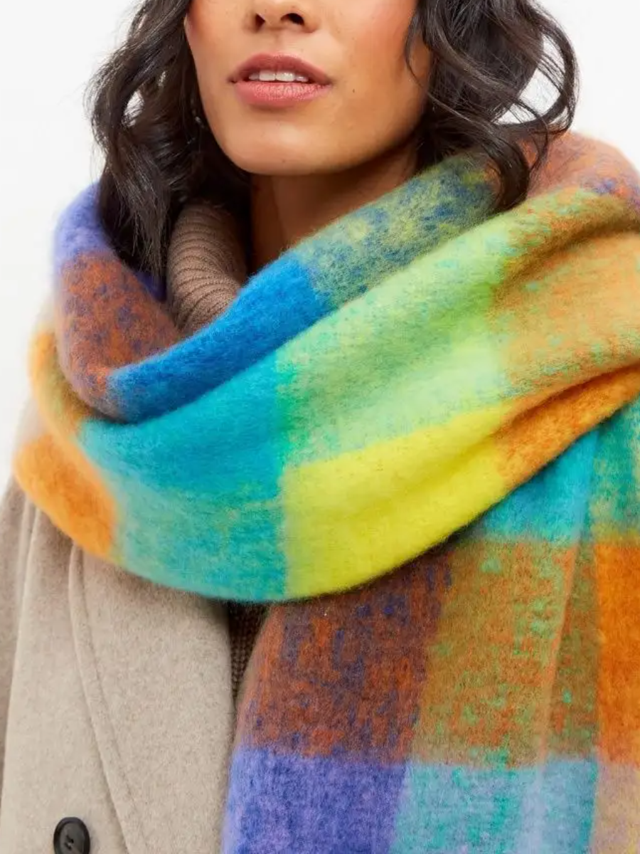 Сток цена/Шарф длинный объемный в клетку разноцветный