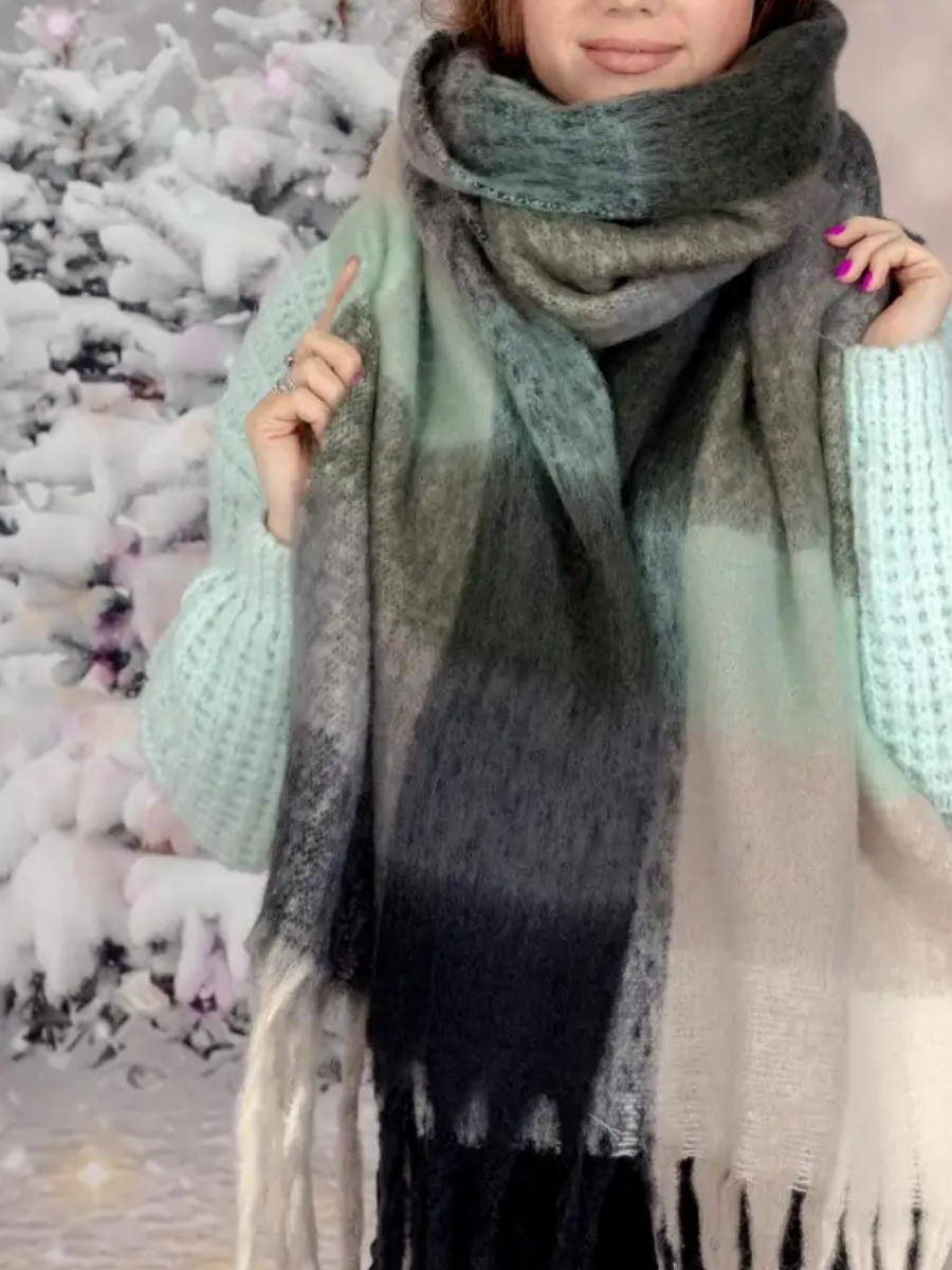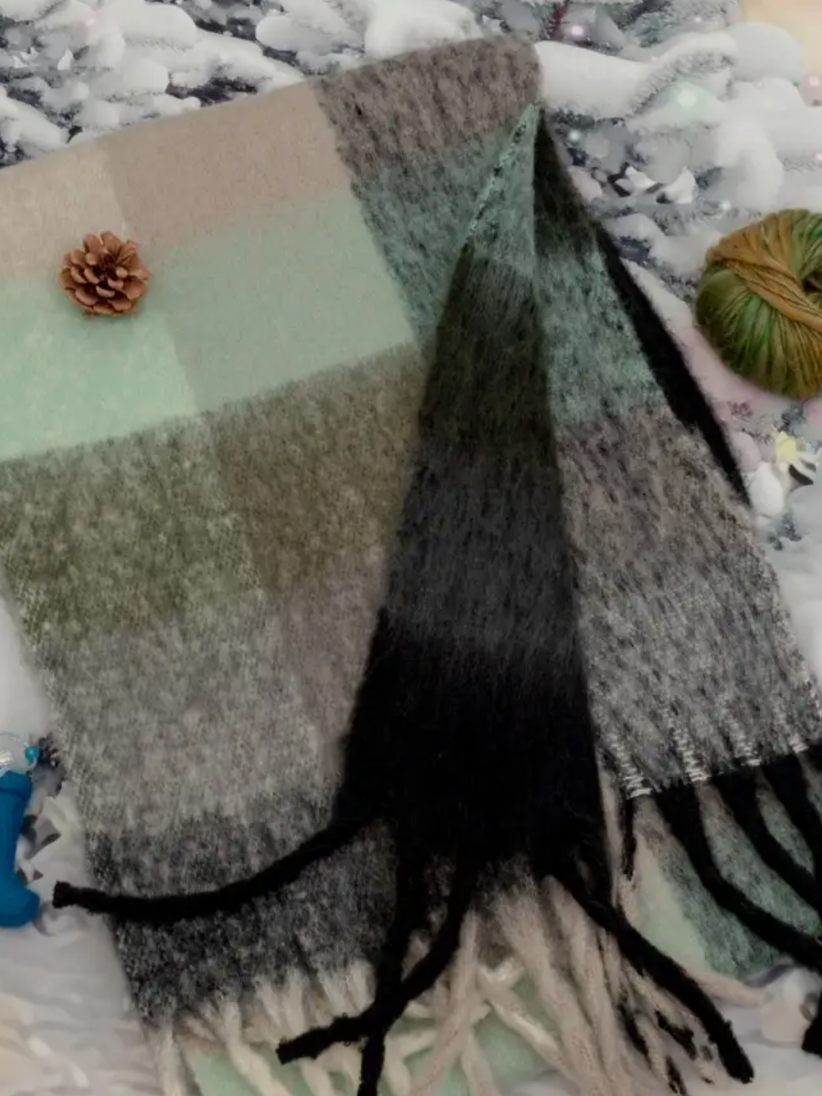 Купить Сток цена/Шарф длинный объемный в клетку зеленый