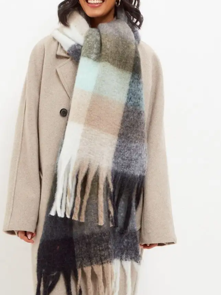 Сток цена/Шарф длинный объемный в клетку бежевый