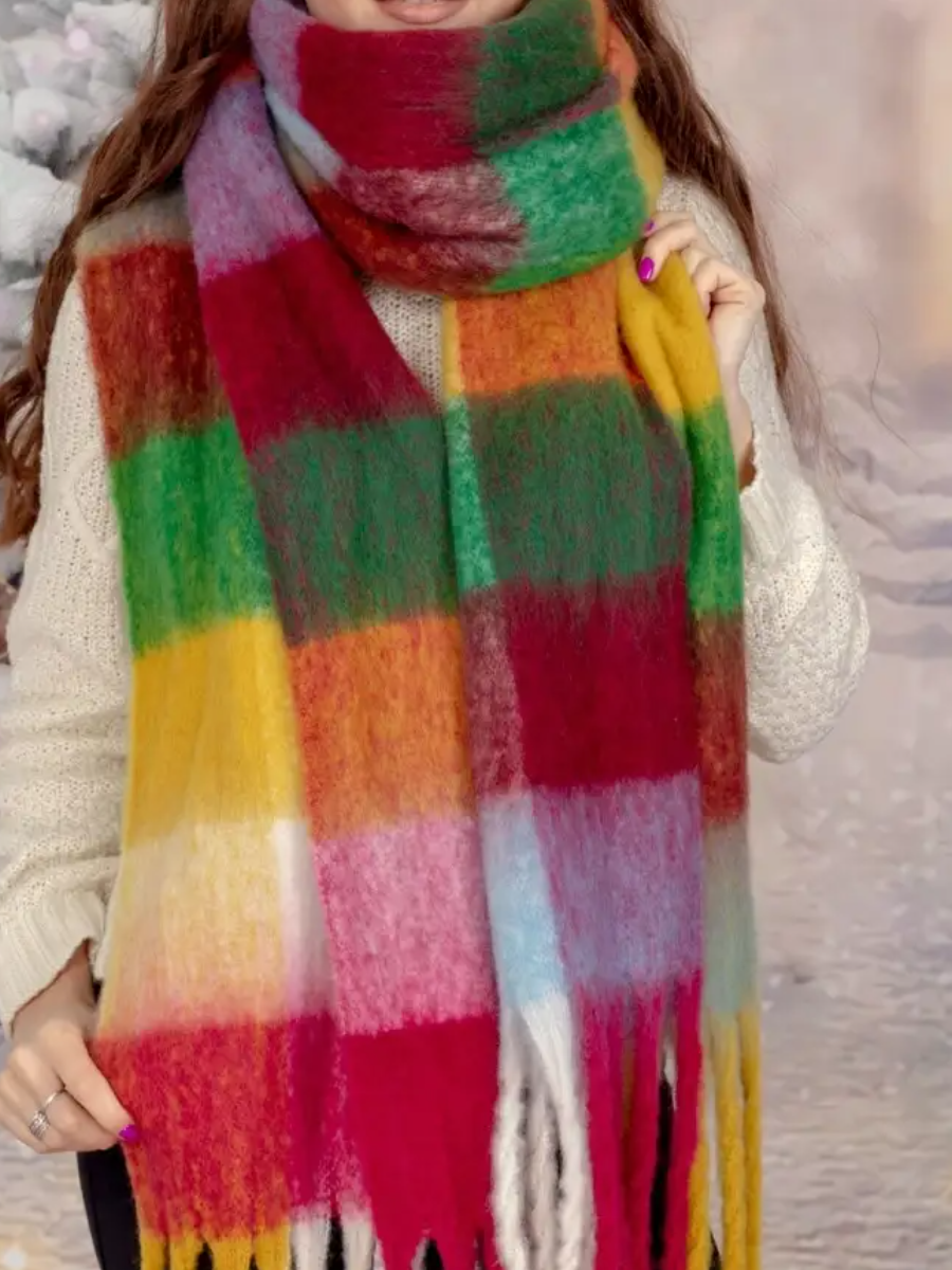 Купить Сток цена/Шарф длинный объемный в клетку разноцветный
