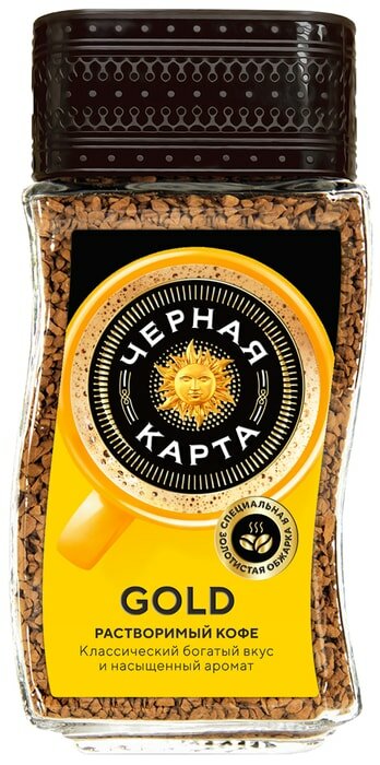 Кофе растворимый черная карта "Gold", сублимированный, 190 г, стеклянная банка
