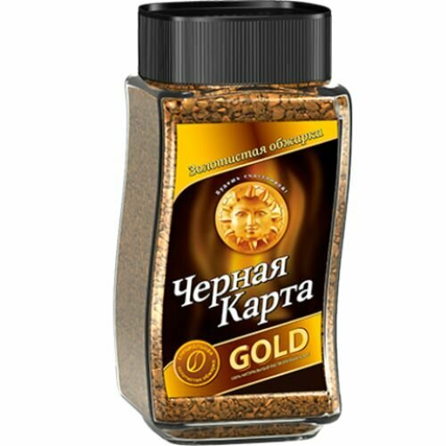 Кофе растворимый черная карта "Gold", сублимированный, 190 г, стеклянная банка