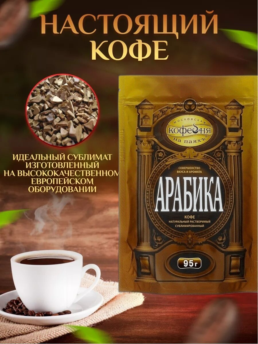 Московская кофейня на паяхъ Арабика кофе рaстворимый, пакет 95 г