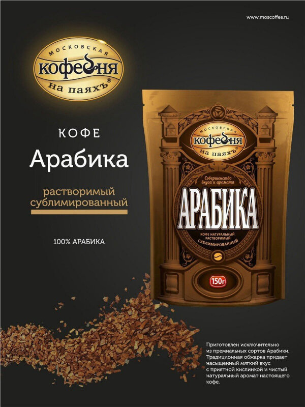 Кофе растворимый московская кофейня на паяхъ Арабика сублимированный пакет 150 г