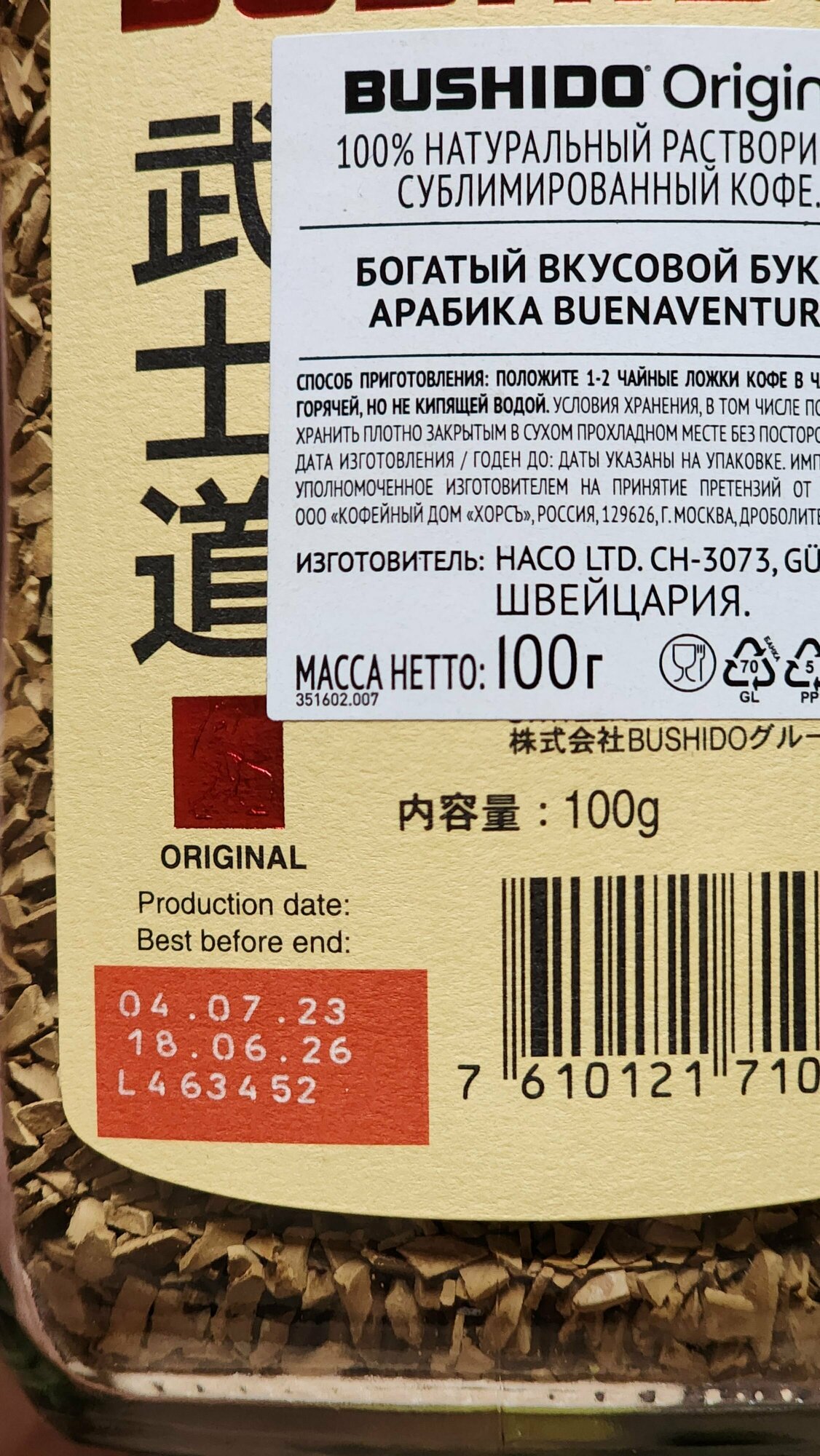 Ниже Вы можете прочитать отзывы на Кофе растворимый Bushido Original, стеклянная банка, 100 г, ознакомится с подробными характеристиками, посмотреть интересные обзоры и фотографии на Кофе растворимый Bushido Original, стеклянная банка, 100 г.