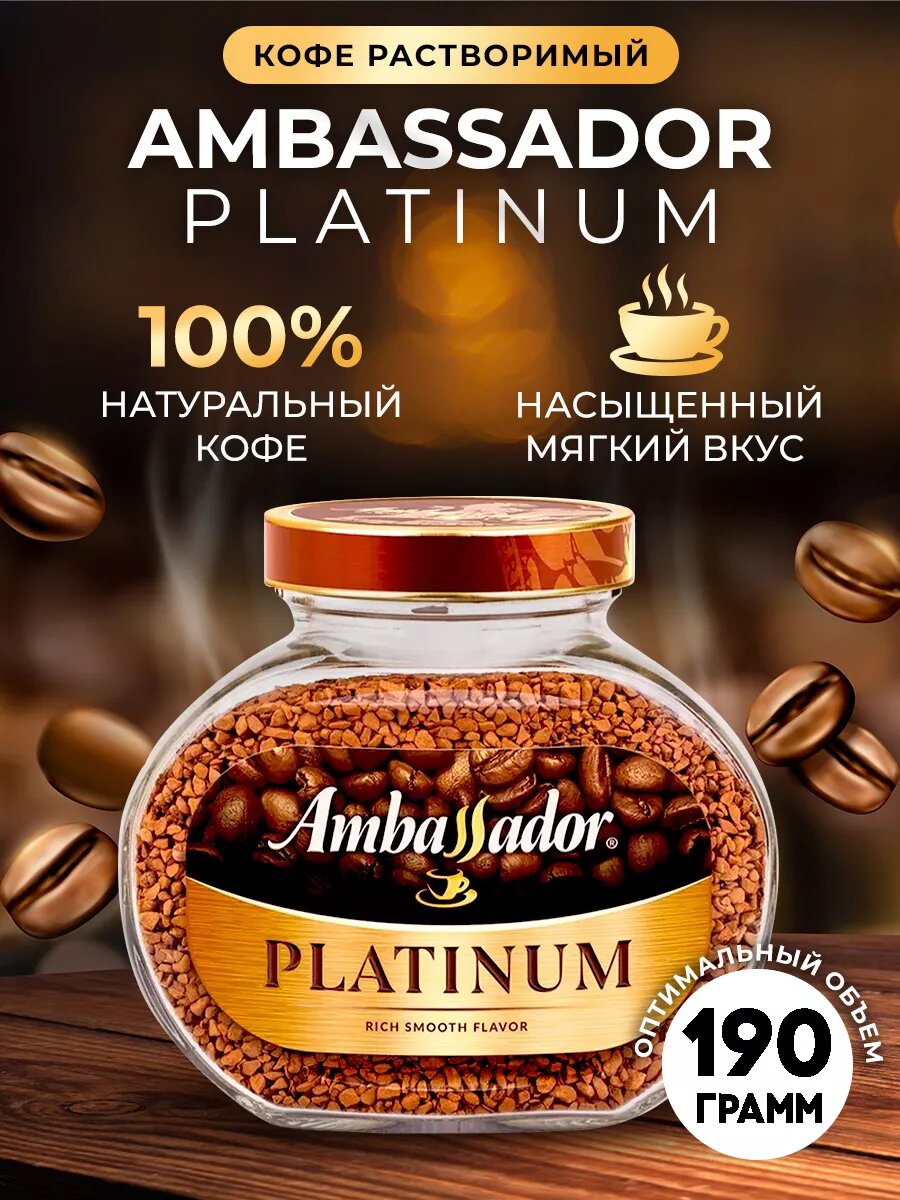 Кофе растворимый AMBASSADOR "Platinum", сублимированный, 190 г, стеклянная банка