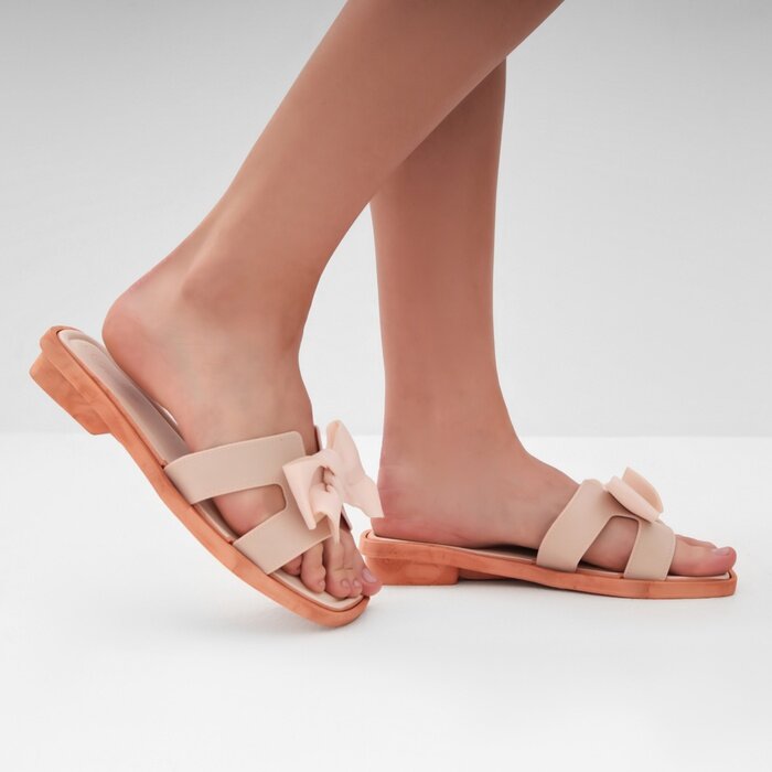 Тапочки женские домашние открытые с бантом размер 36-37 цвет молочный