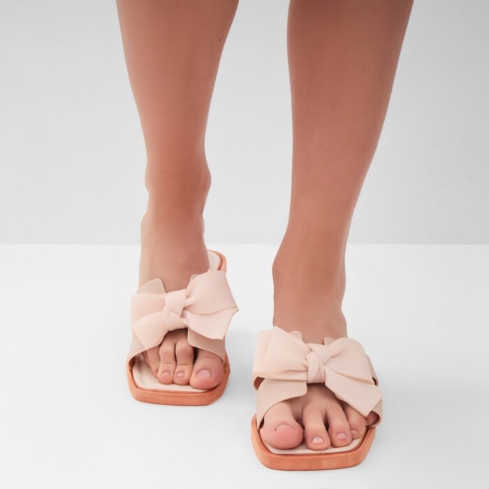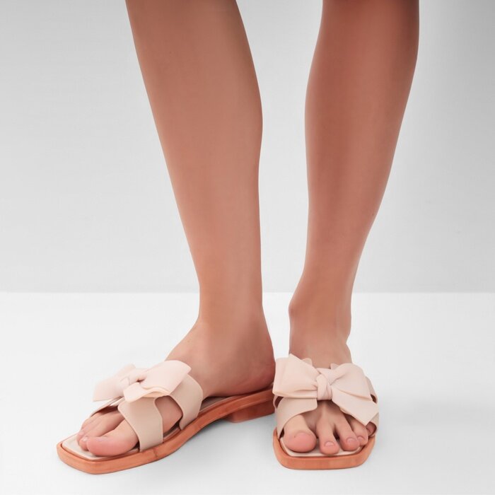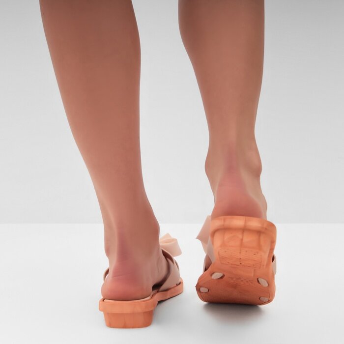 Тапочки женские домашние открытые с бантом размер 40-41 цвет молочный