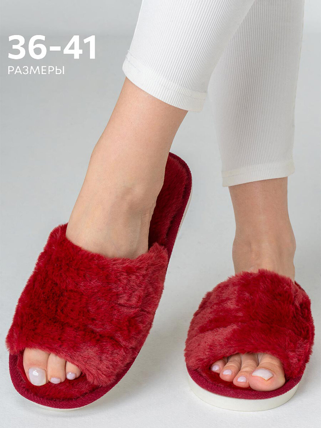 Тапочки женкие домашние меховые пантолеты Happy Fox Home HFS3523 бордовый 40-41