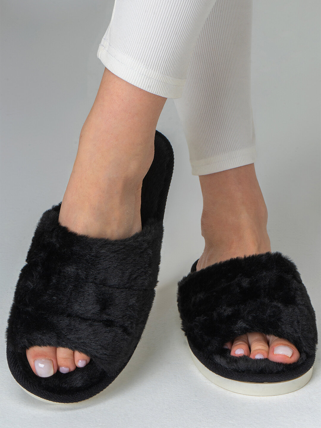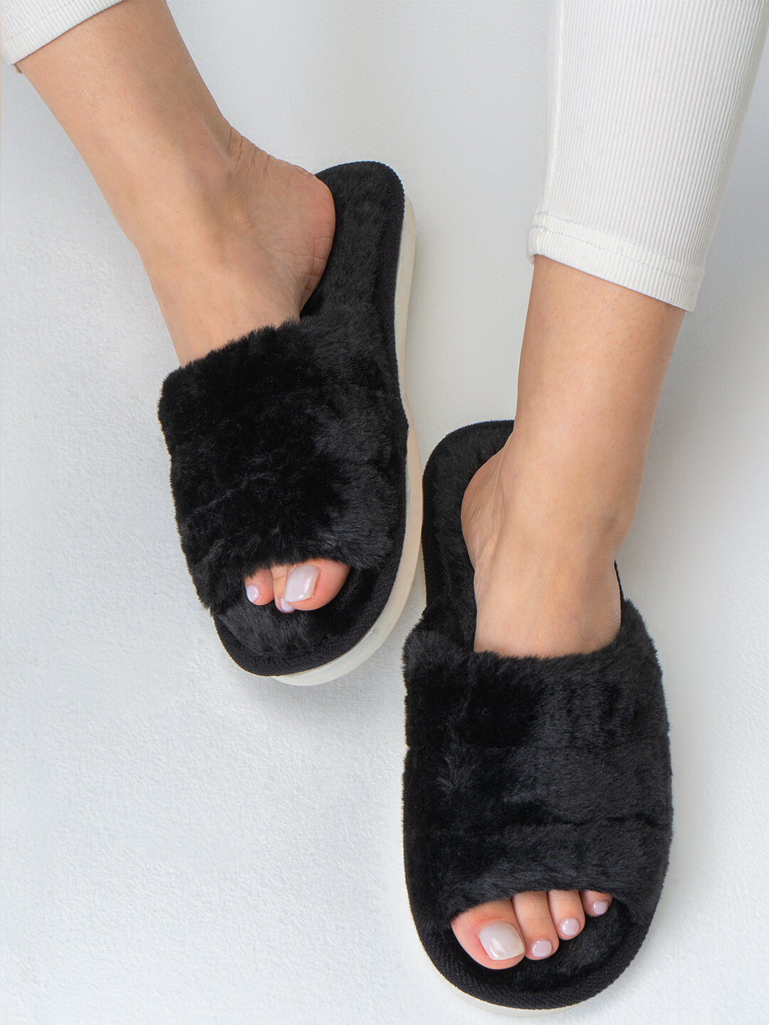 Тапочки Happyfox Home домашние меховые зимние пантолеты, подошва ЭВА, белый HFS3523белый