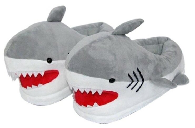 Плюшевые домашние тапочки "Акула серая". Цвет серый. Унисекс. Универсальный размер 37-41 интересное: