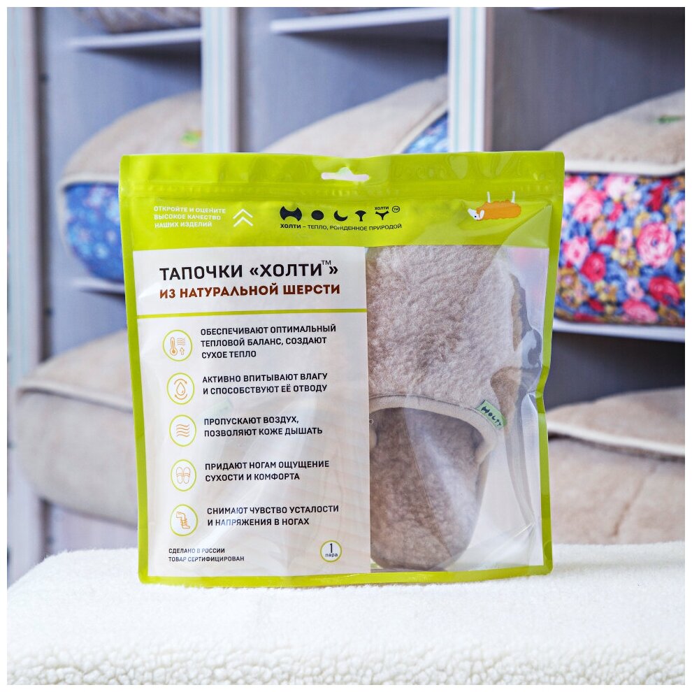 Тапочки из шерсти Холти "Гармония" теплые меховые домашние женские (39), бежевый