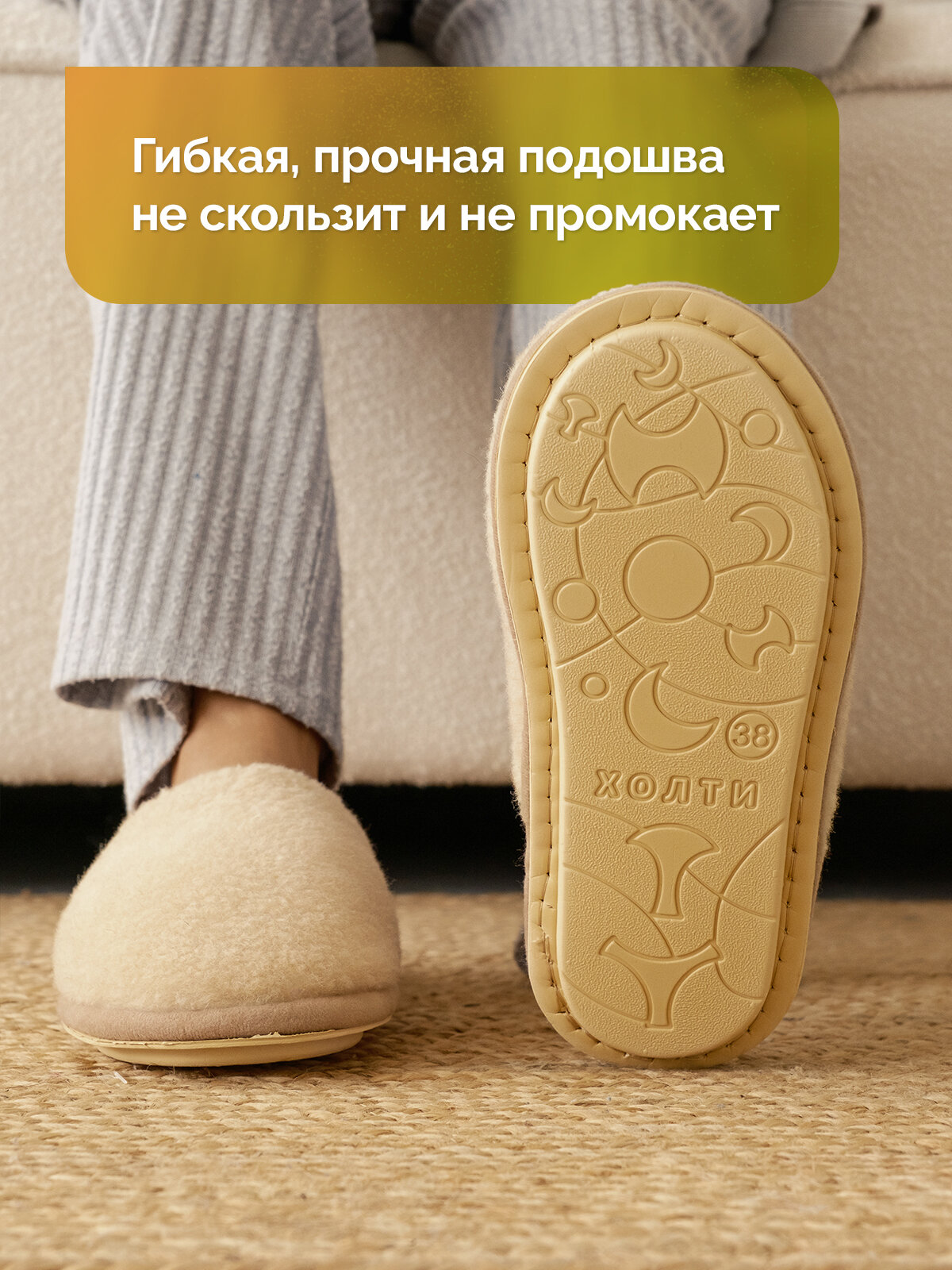 Тапочки из шерсти Холти "Гармония" теплые меховые домашние женские (бежевые) (36)