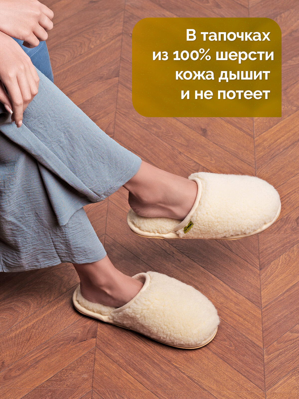 Тапочки из шерсти Холти "Гармония" теплые меховые домашние женские (39), бежевый