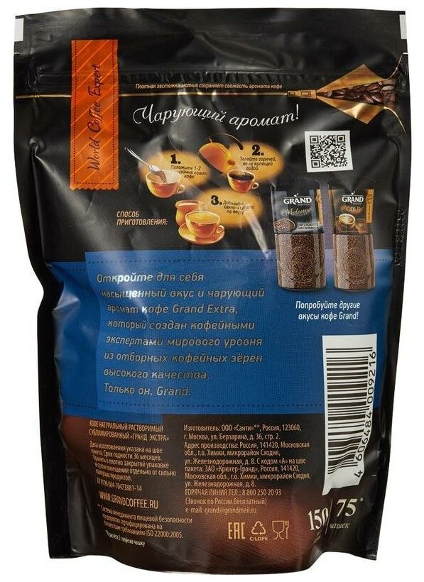 Кофе Grand Extra сублимированный, д/пак 150 г, 1 шт.