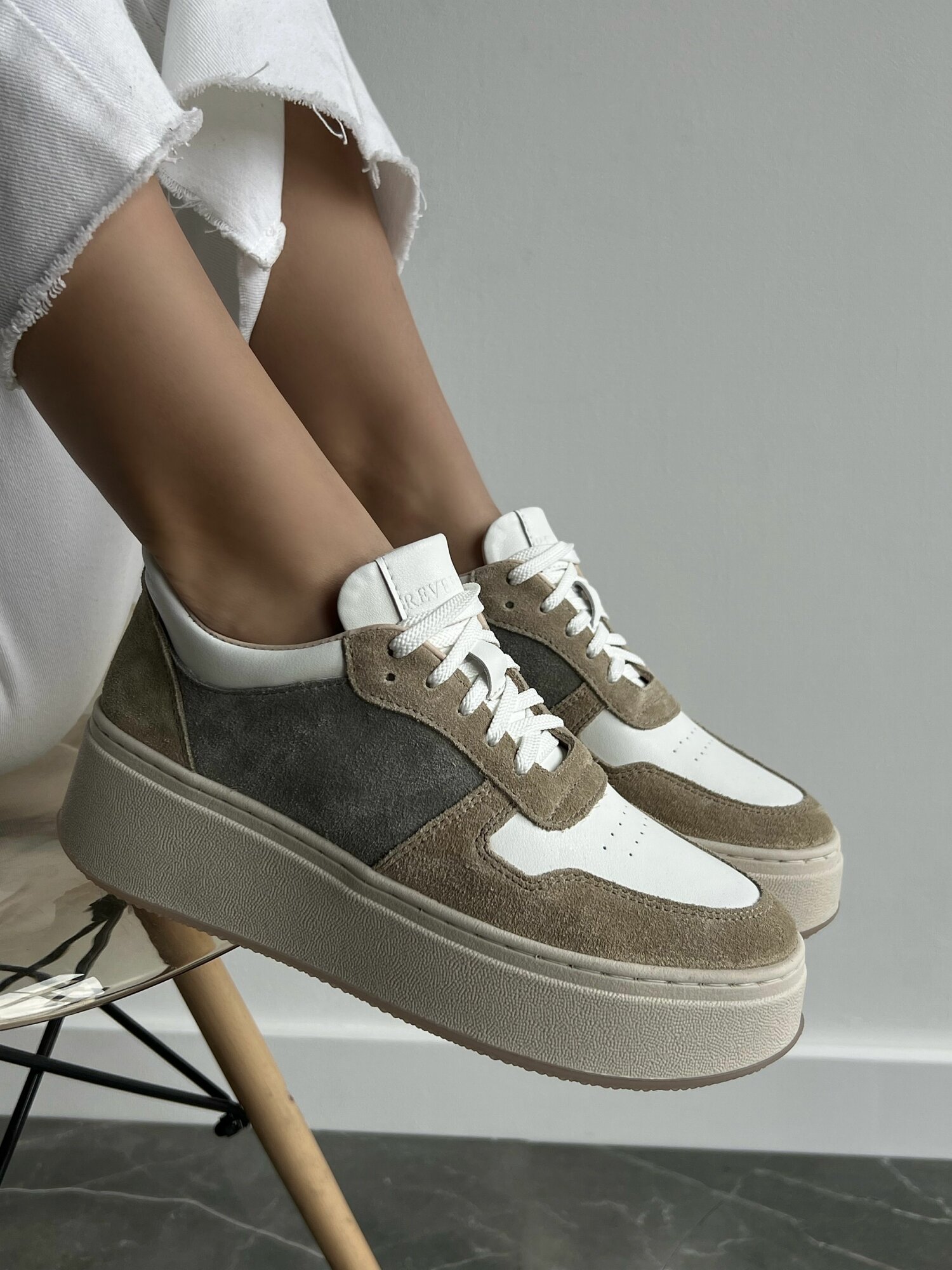 Купить Кеды натуральная кожа на высокой подошве , Reversal, 750103_Пломбир-св.серый-белый-(Крем-пудра-розовый)-37