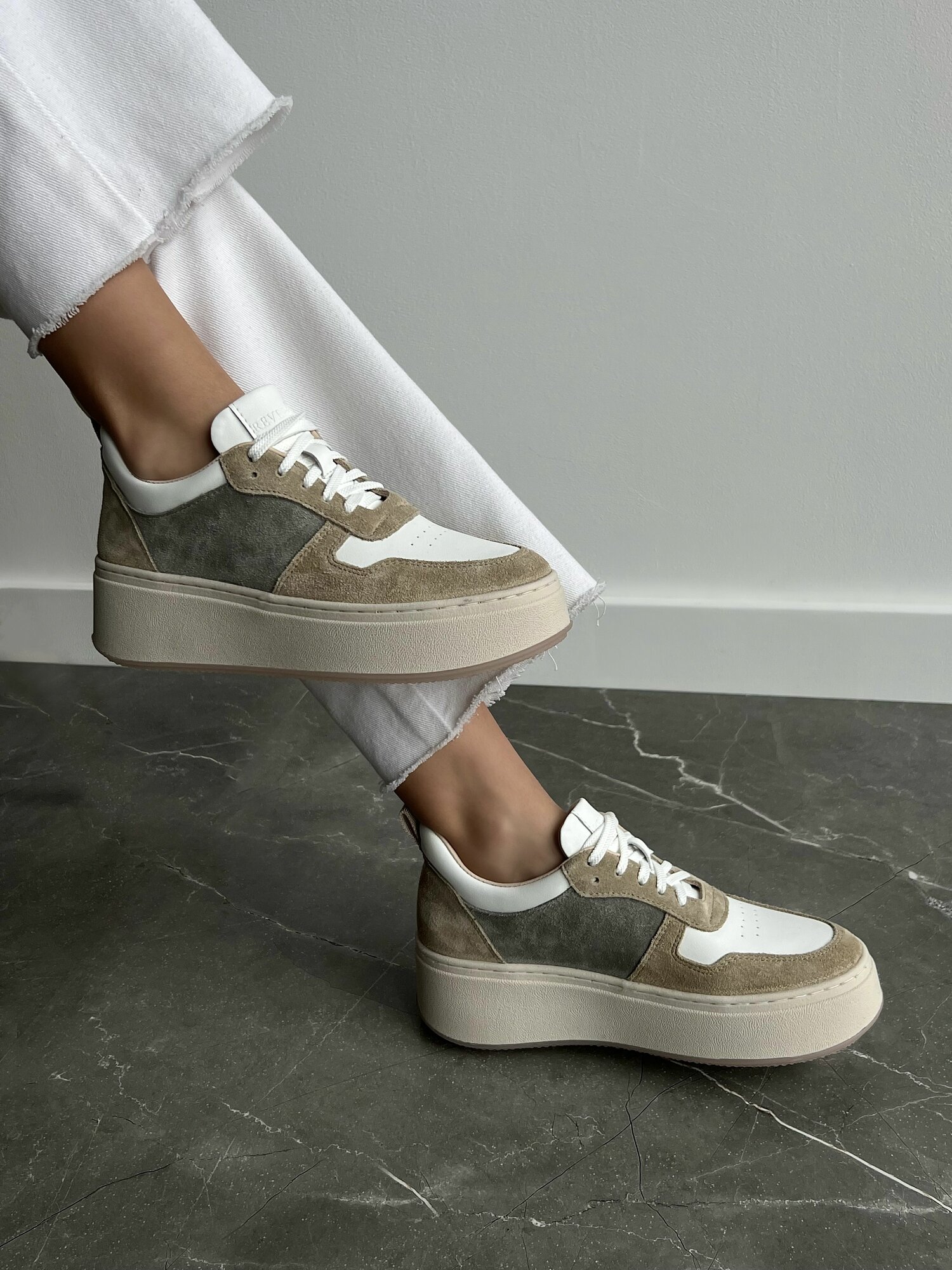 Кеды натуральная кожа на высокой подошве , Reversal, 750103_Пломбир-св.серый-белый-(Крем-пудра-розовый)-38
