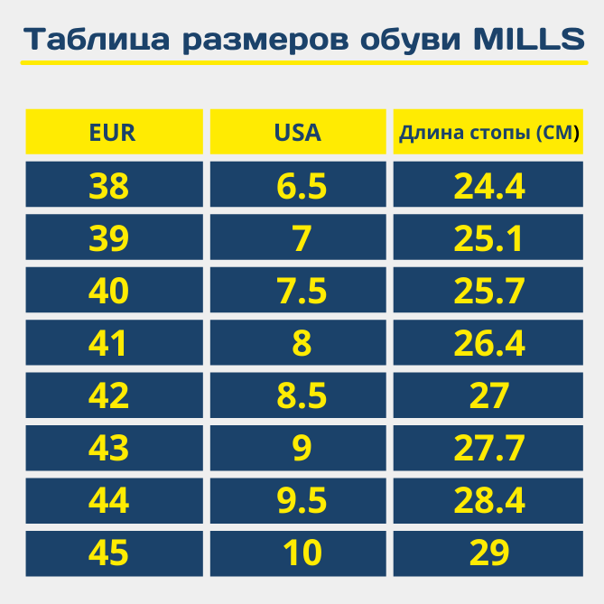 | Дополнительная информация | Для наиболее точного подбора размера советуем вам измерять стопу в сантиметрах. Исходя из результатов длины стопы выбирать размер обуви. |