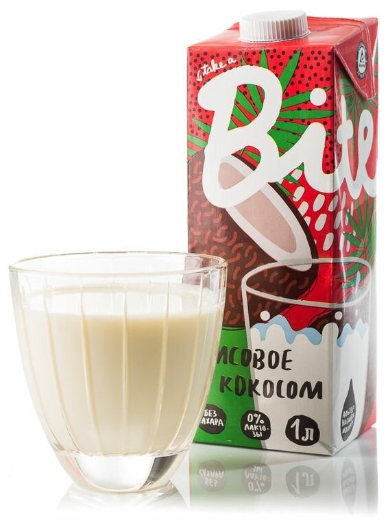 Молоко растительное Bite Кокосовое с рисом 1 л. Vegan, без лактозы, постное, пп, без сахара интересное: