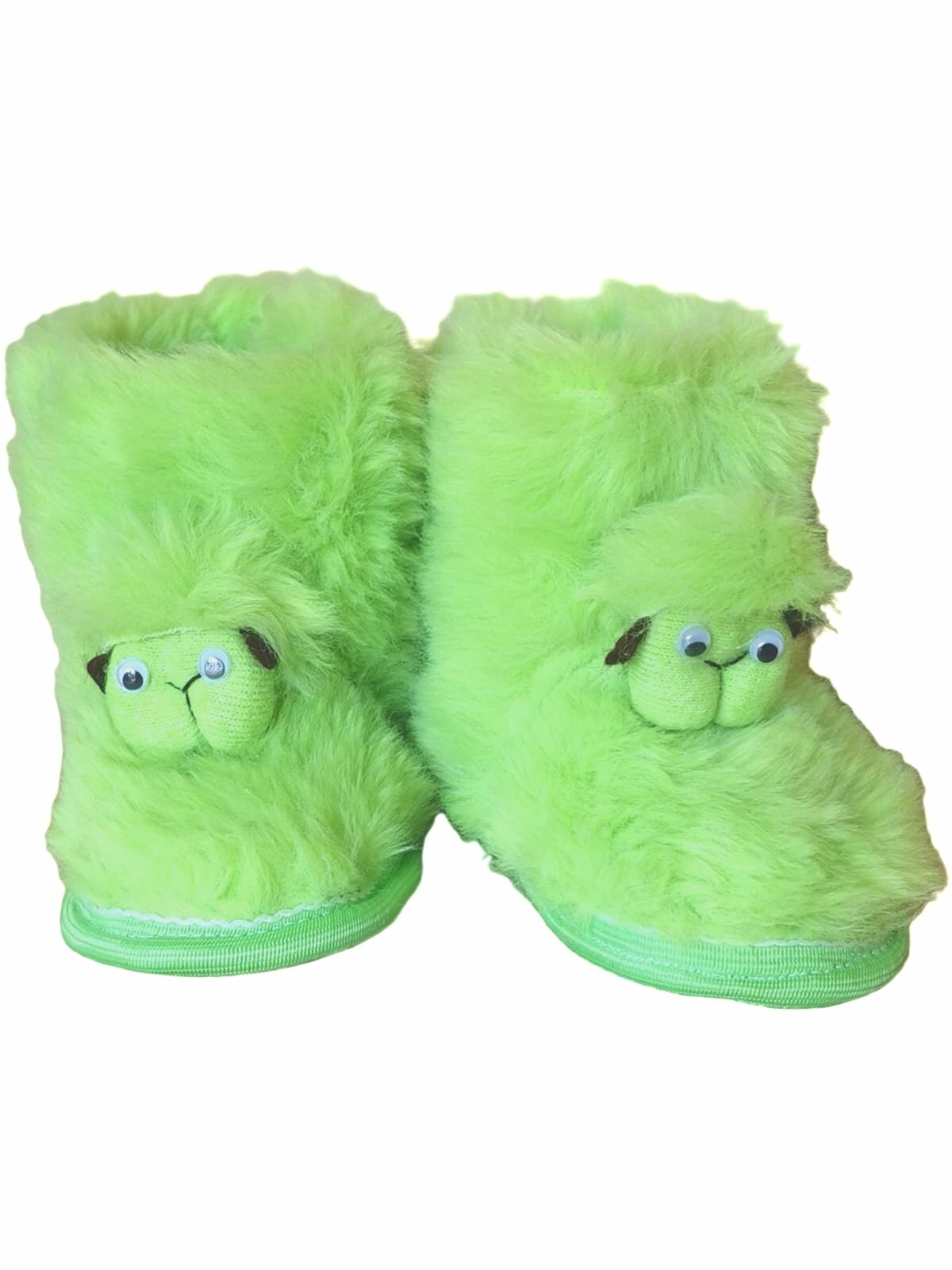 Купить Детские тапочки-чуни из овчины для девочек и мальчиков зеленые, р-р 28