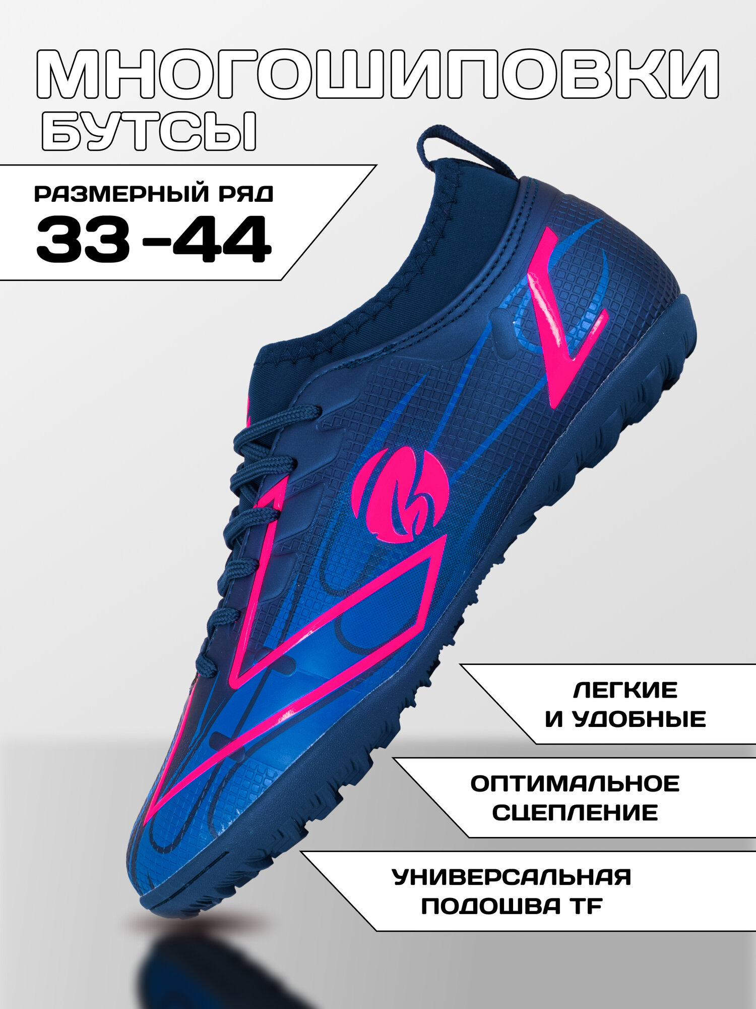 Спортивные футбольные бутсы многошиповые детские Backheel BLUE 210809 размер 37 интересное:
