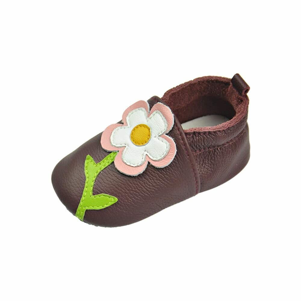 Купить Кожаные Чешки-пинетки для девочки Бордо Цветок, Shubb