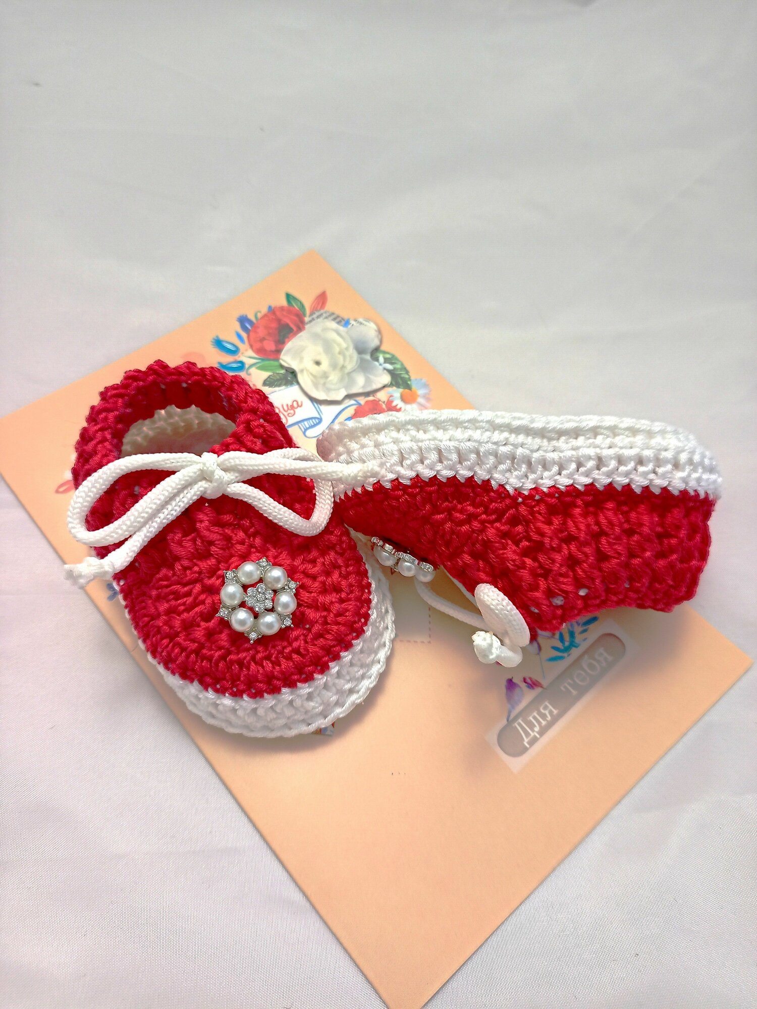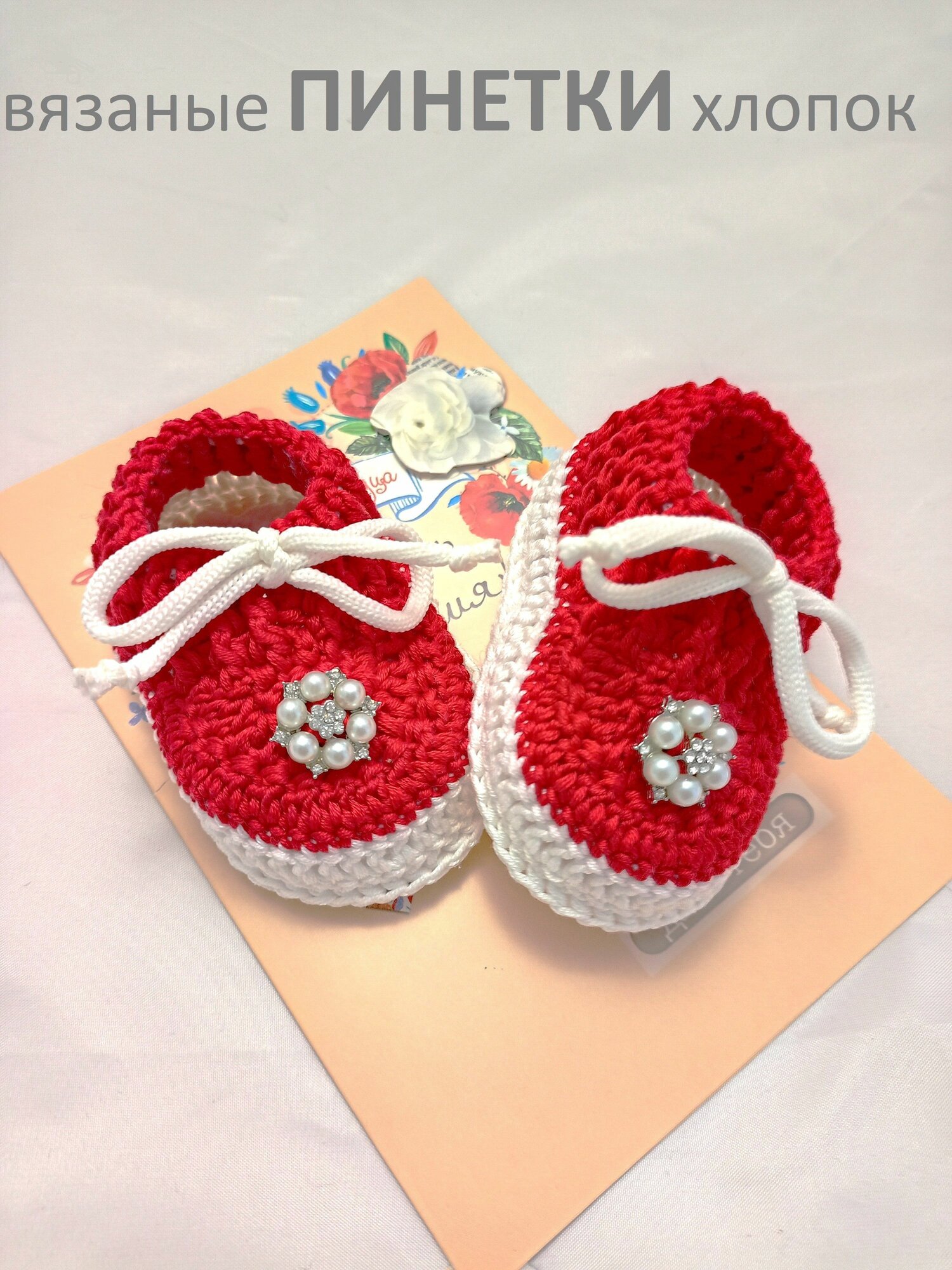 Пинетки, размер 10,5см (3-4мес), пыльная роза, белый