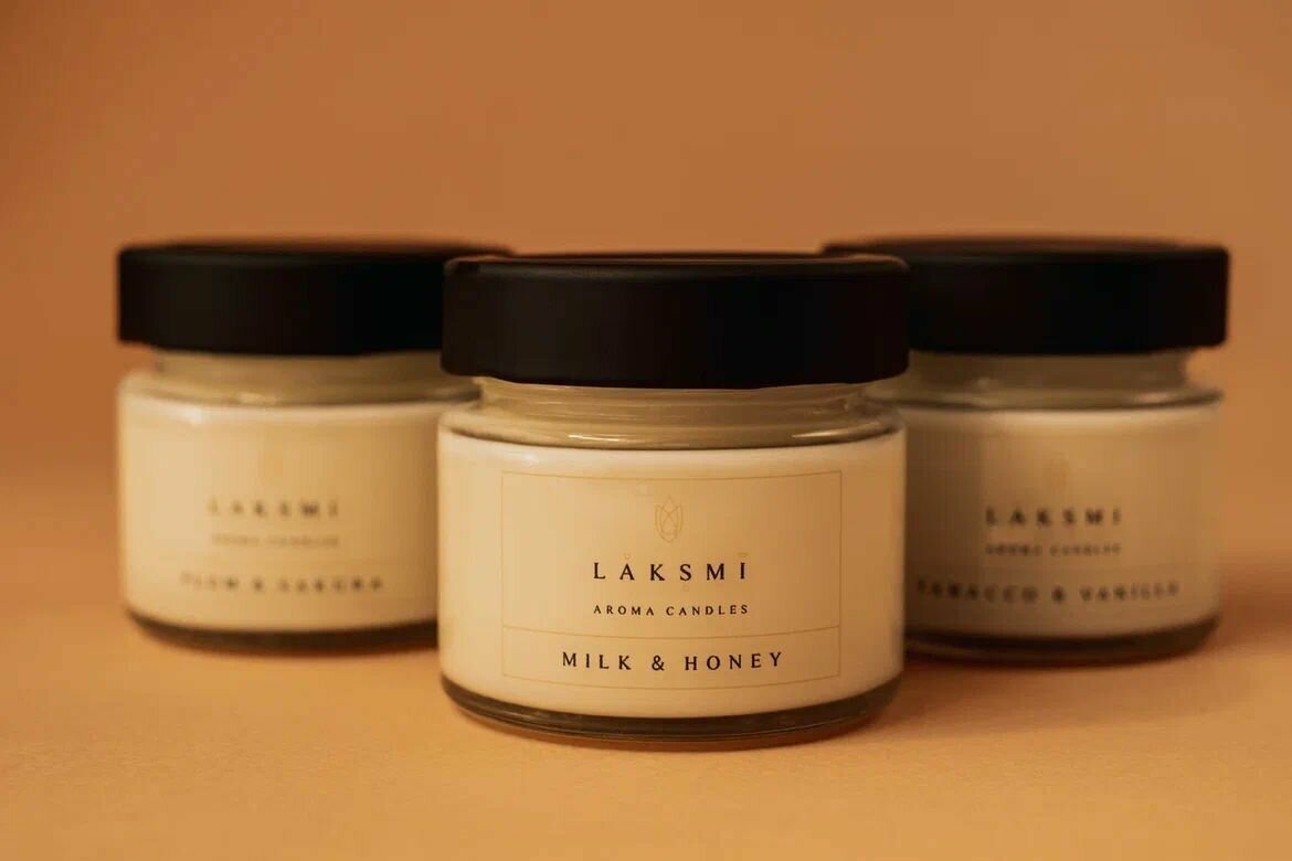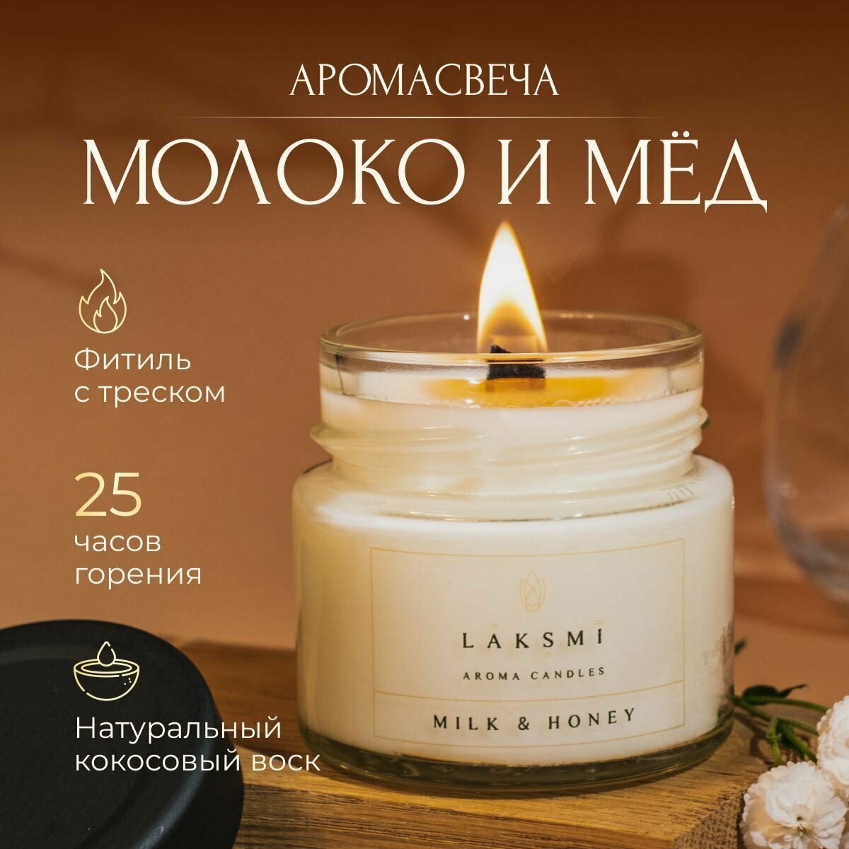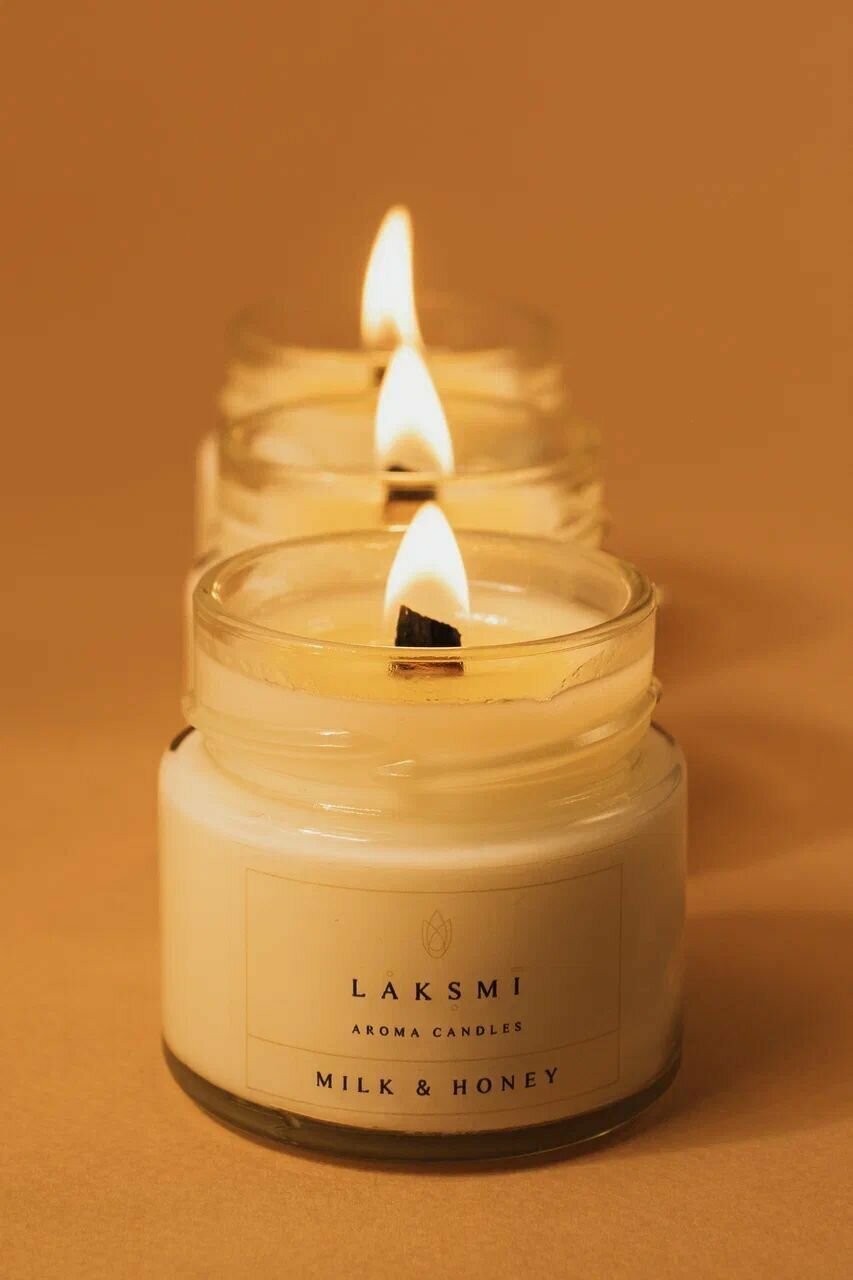 Купить Свеча ароматическая "Молоко и мед" Аромасвеча Laksmi/ деревянный фитиль с эффектом "потрескивания"/ 25 ч. горения, 100мл