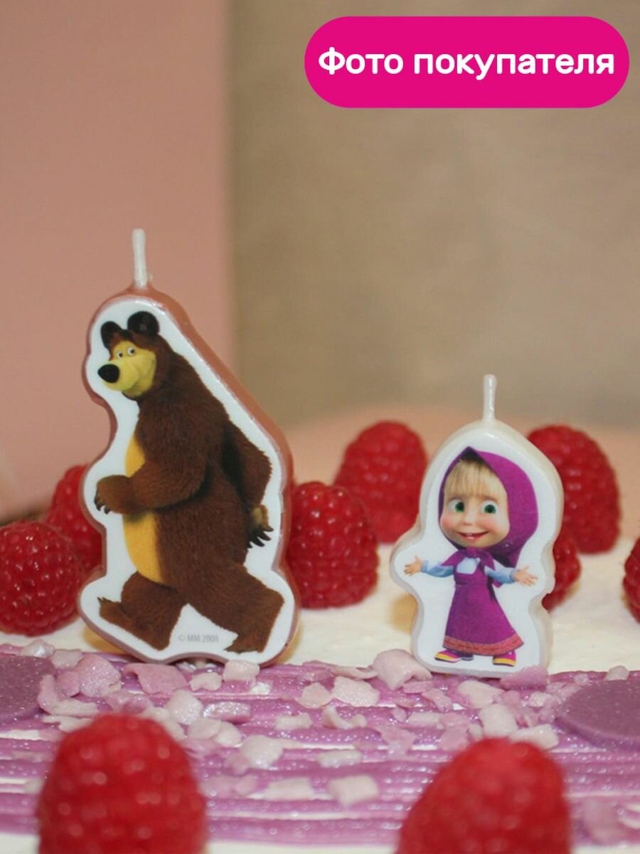 Купить Свечи для торта парафиновые детские/для детей/на детский день рождения Веселая затея Маша и Медведь, 8 см, набор 5 шт