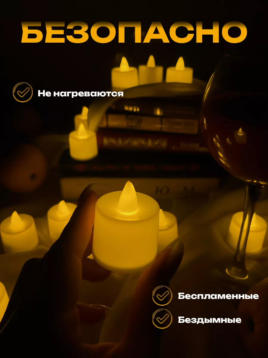 Свечи светодиодные мерцающие на батарейках набор 24 шт интересное:
