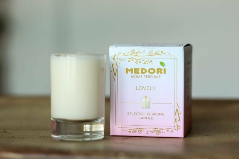 Свеча ароматическая для дома Medori LOVELY парфюмированная, декоративная с запахом в стеклянном стакане, из соевого воска для украшения интерьера интересное: