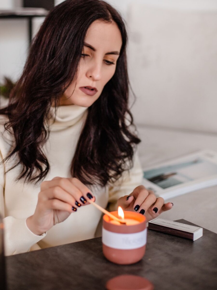 Свечи ароматические на 8 марта/ Аромасвечи "Слива кашемир" в стакане из гипса с крышкой 190мл /Соевый воск/Деревянный фитиль / Ручная работа