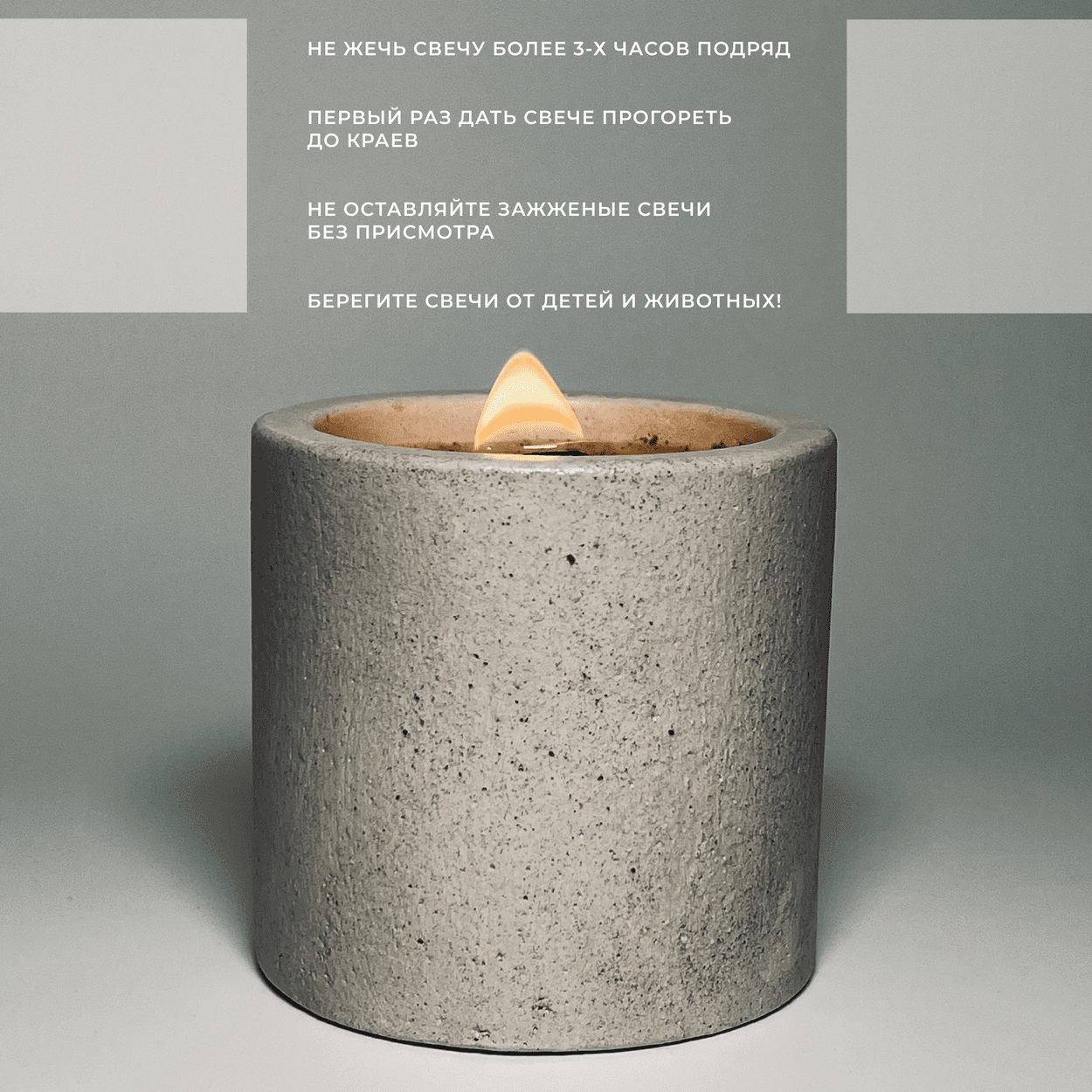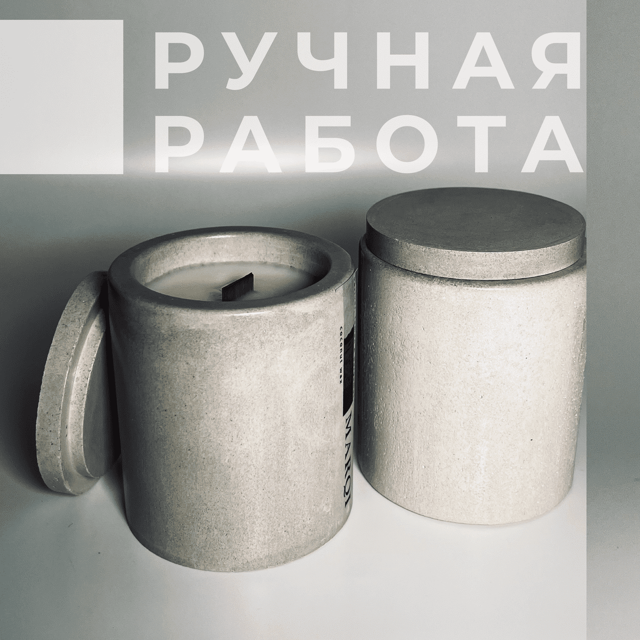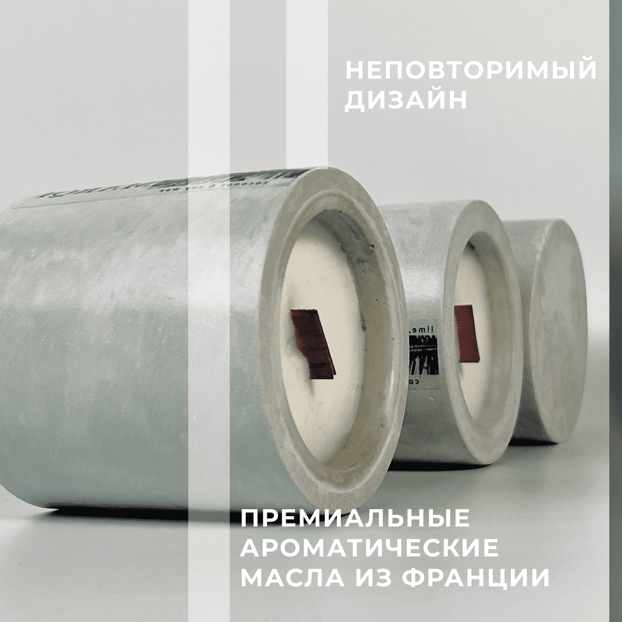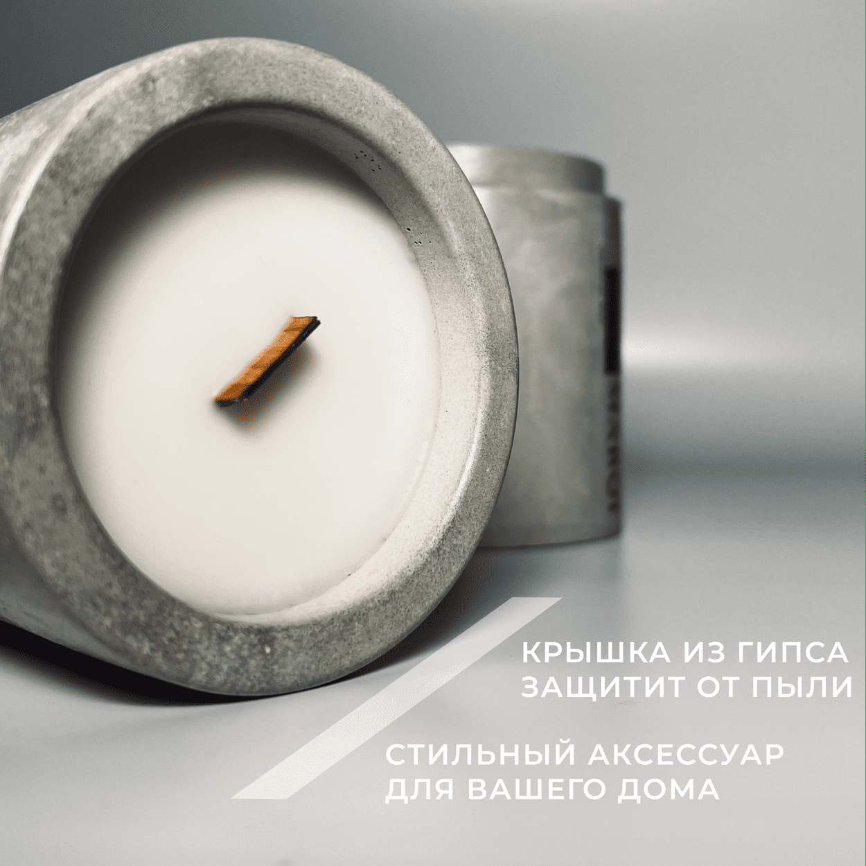 Свеча ароматическая с запахом "Табак и ваниль" (Tobacco & vanille) из кокосового воска в гипсе (имитация бетона) с крышкой с деревянным фитилем 150мл