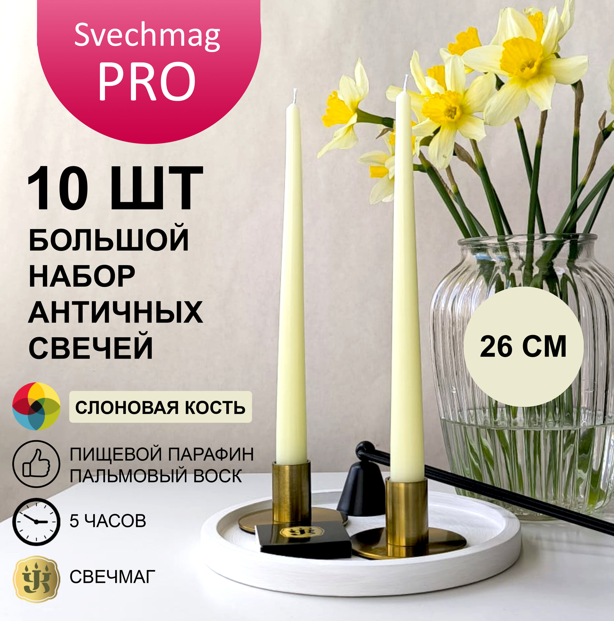 Свечи античные белые H26см столовые, набор 10 шт, Свечмаг